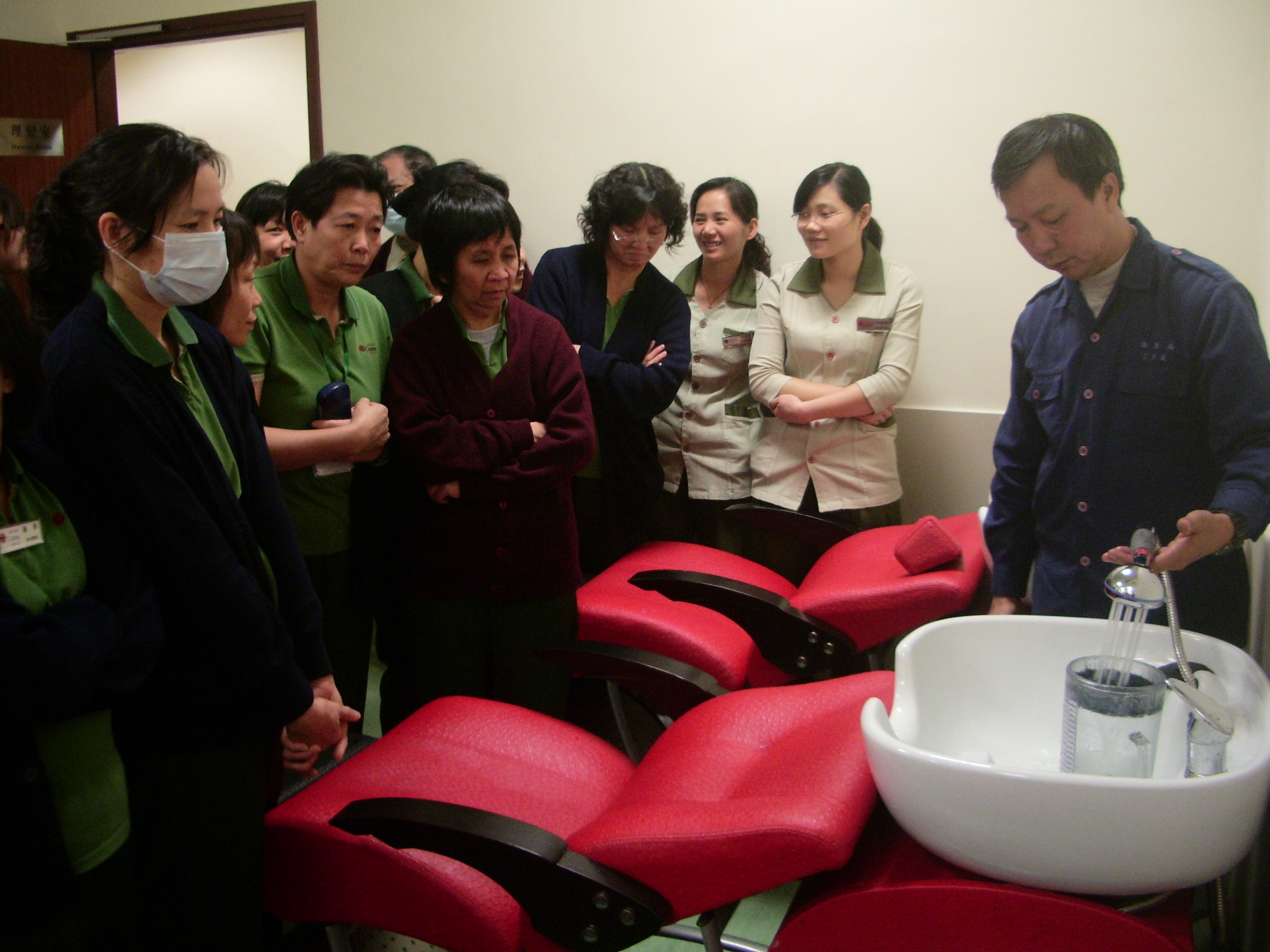 節水小組除透過「慳水有妙法」節水講座,向護理人員灌輸節約用水的意識,以及良好的用水習慣外,亦講解了節水器具的類別及用途,並即場示範了節水器具,包括節水花灑和節水水嘴的安裝方法以及節水效能。