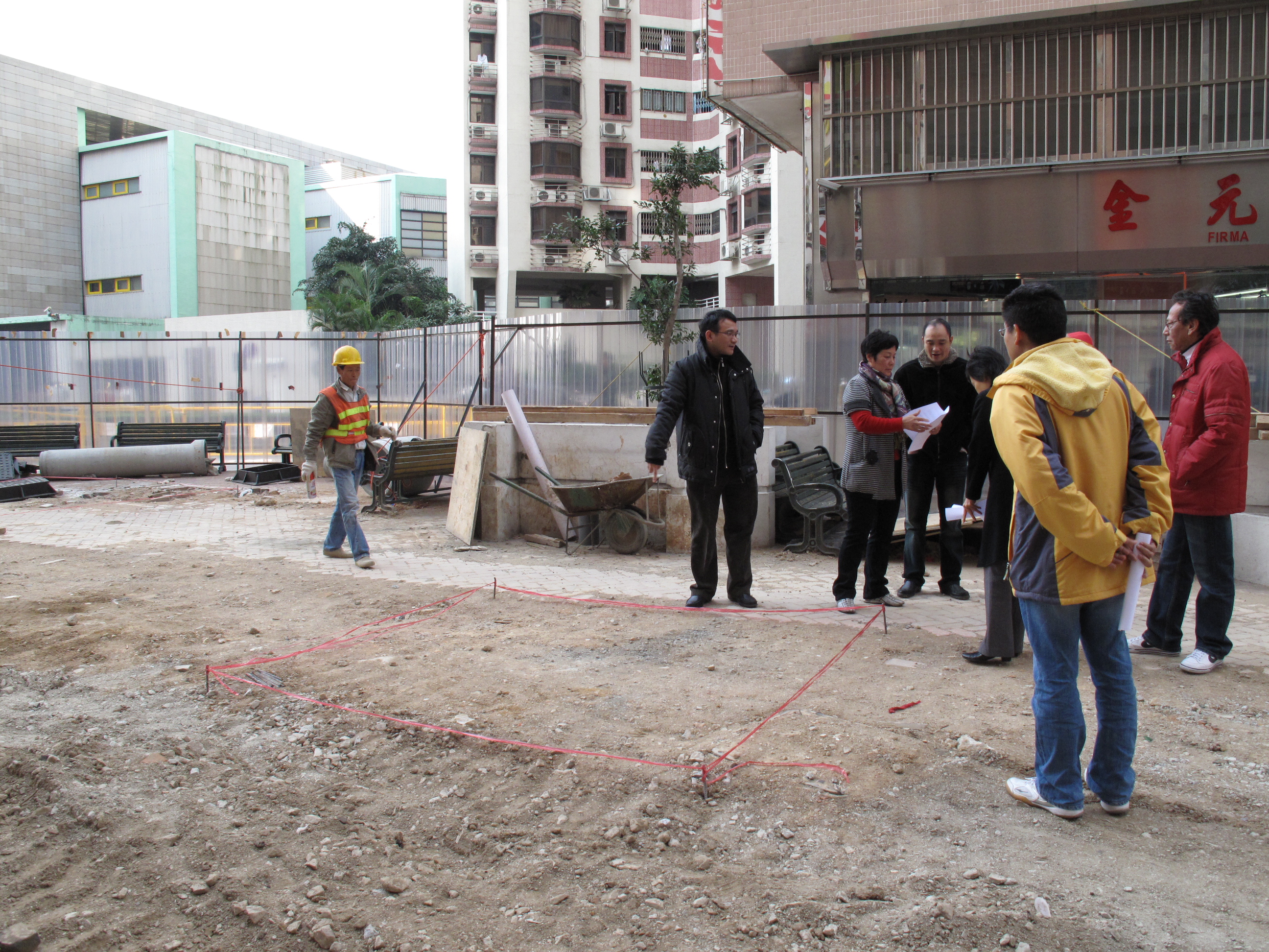 為更清晰向居民解釋關閘廣場東側行人天橋興建方案,土地工務運輸局人員在施工地點標示落腳點所佔位置,並作現場解說,居民基本支持興建天橋,但仍對落腳點位置有意見,土地工務運輸局由即日起至本月二十五日在現場放置意見箱,收集居民意見。