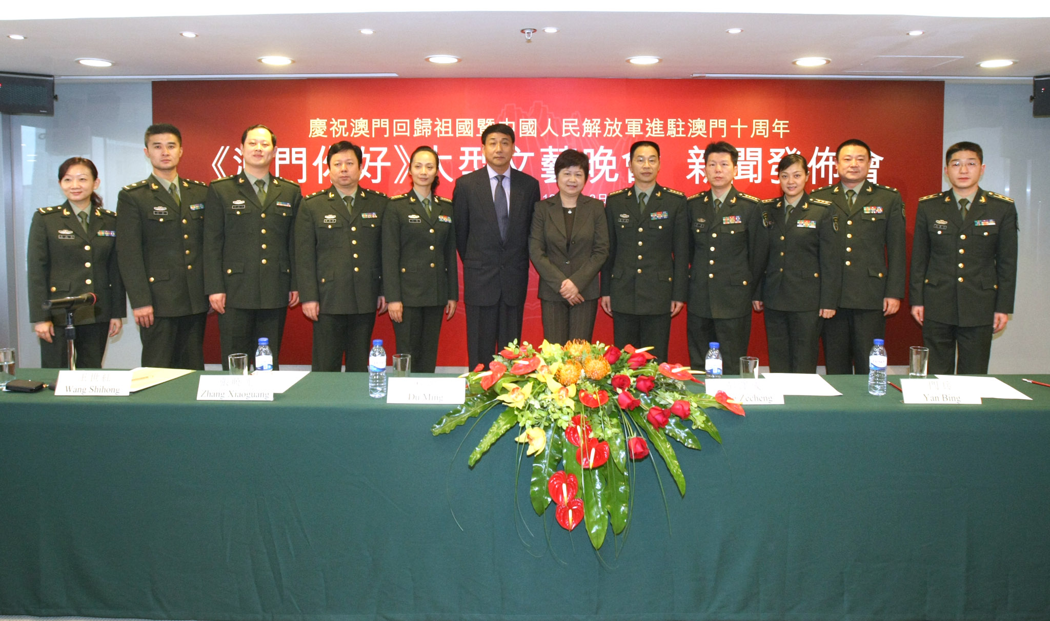 中國人民解放軍戰士文工團副團長彭澤成大校、藝術總監杜鳴大校、總導演閆兵、澳門文化局副局長王世紅及解放軍駐澳部隊新聞發言人向建華中校等出席11月24日舉行的新聞發佈會介紹演出內容。