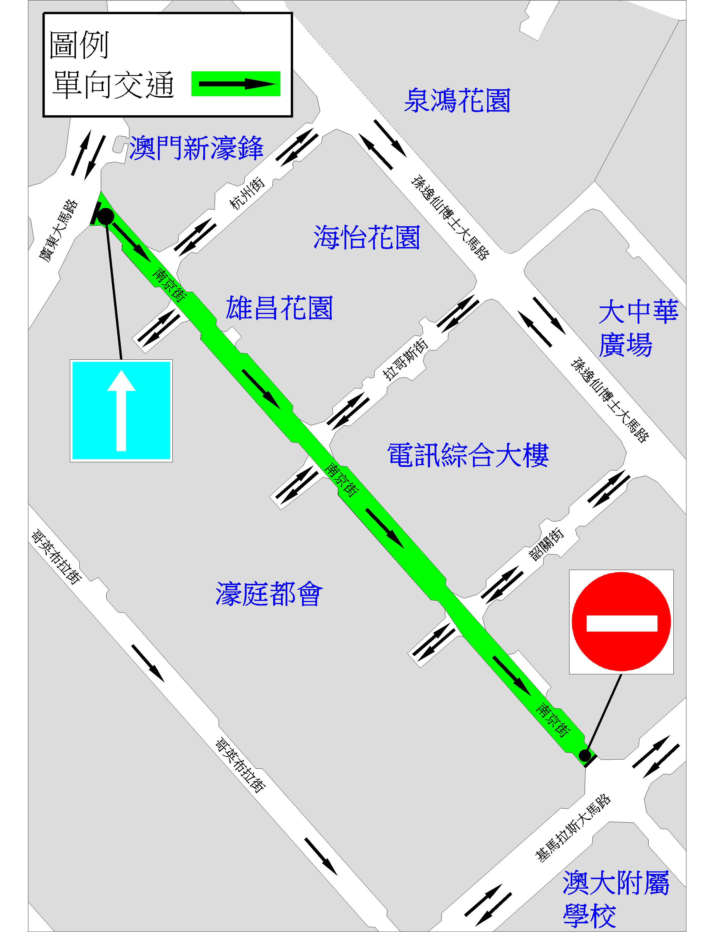 位於氹仔介乎廣東大馬路與基馬拉斯大馬路之間的一段南京街,將於7日(周一)上午11時起臨時改作單向行車,為期9日,以配合重鋪路面工作,交通事務局呼籲駕駛者留意有關交通改動。