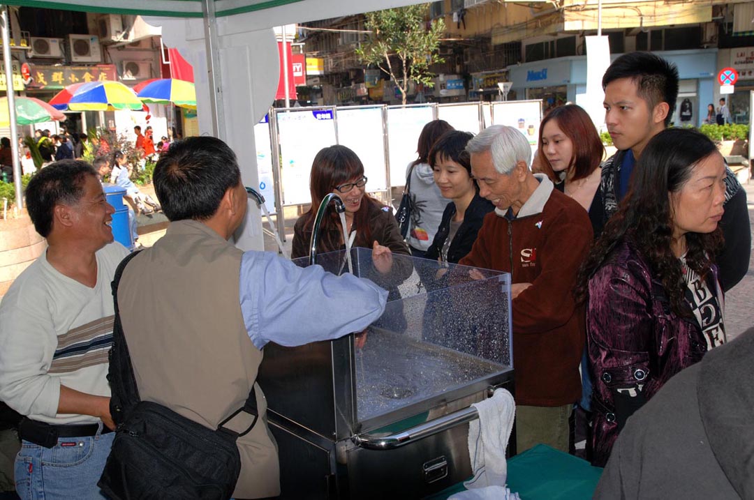 今日下午二時至五時,小組在三盞燈圓形地設置了多個以節水為主題的攤位遊戲,參加遊戲的市民獲贈由小組送出的節水器具及宣傳節水的精美紀念品;現場更有專人示範節水器具的安裝方法及展示其節水效能,吸引不少市民駐足圍觀,並向現場人員查詢有關節水器具的問題。