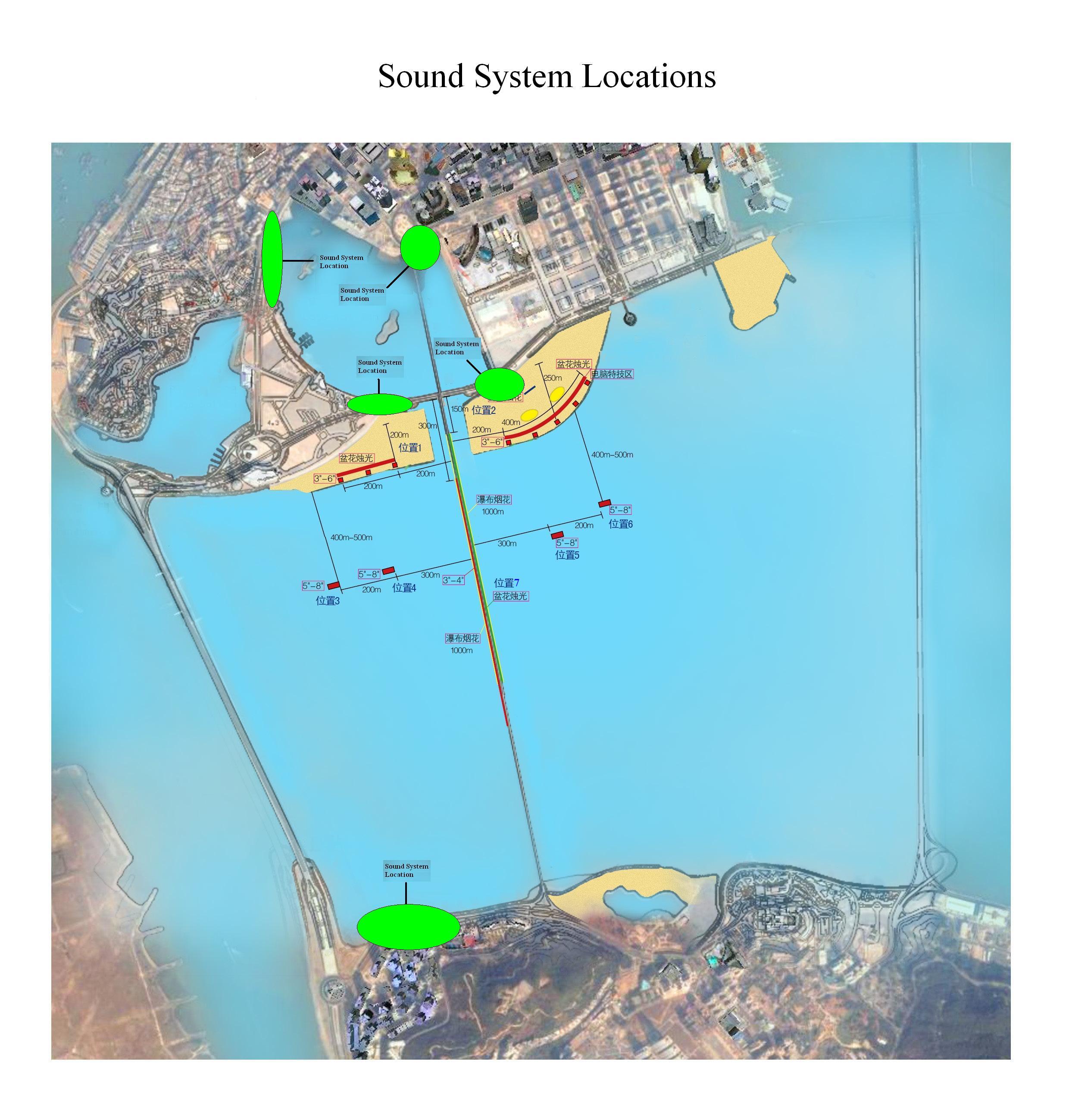 為使煙花匯演有更佳效果,旅遊局於五個位置擺設音響系統播放音樂,而澳門電台也會播送現場表演音樂。備有音樂播放系統的地點有南灣湖景大馬路、沙格斯大馬路與嘉樂庇大橋之間休憩區(永利酒店旁邊)、孫逸仙大馬路(壹號湖畔前方)、孫逸仙大馬路(面向南灣湖)及氹仔海洋大馬路。