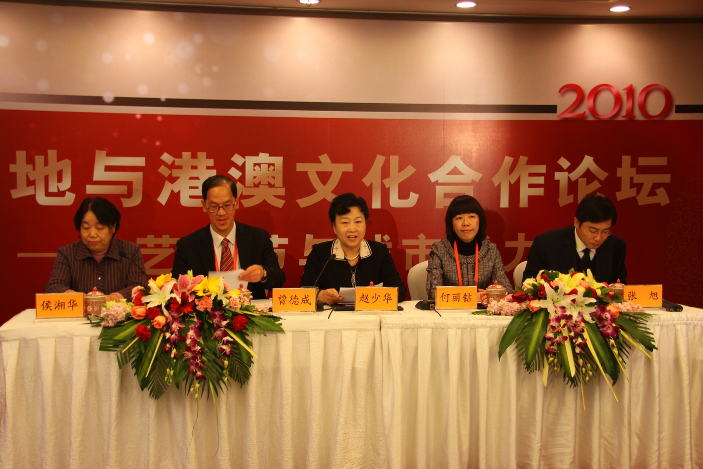 “2010年內地與港澳文化合作論壇”由文化部主辦,中央文化管理幹部學院承辦,今年主題定為“藝術節與城巿活力”。文化部副部長趙少華、香港特區政府民政事務局局長曾德成、文化部港澳台辦黨委書記侯湘華、港澳及內地專家學者、知名藝術節籌組單位的代表等參與會議,共同就如何藉藝術節增強城巿活力進行交流和探討。