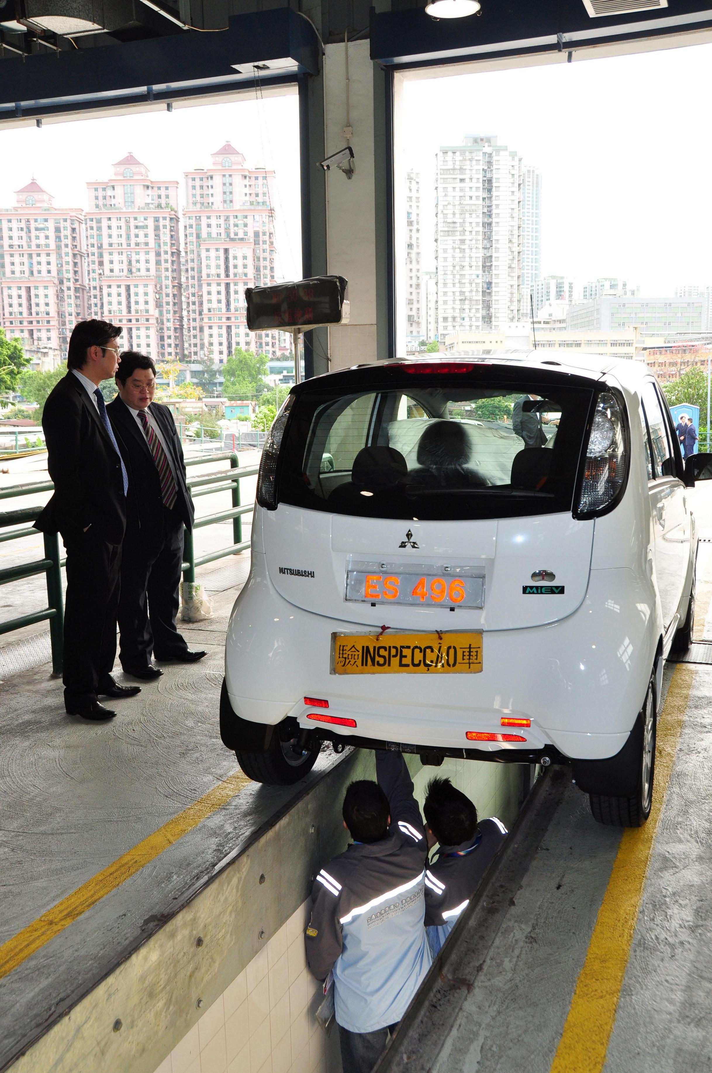 今日下午,交通事務局轄下的汽車檢驗中心為本澳首台通過車輛型號認可的電動輕型汽車進行檢驗,技術人員逐一核對車輛規格資料及車輛技術特徵,並檢查燈光、量度車窗玻璃透光度以及在驗車線設備檢測其行車安全性能(包括側向偏差、懸掛系統、制動系統及底盤結構)及爬坡能力測試,其檢測結果全部合格,同時通過充電系統安全測試,據廠方提交的技術性測試資料顯示,倘車輛遇到颱風水浸時,能自動切斷電源,確保不發生漏電情況。