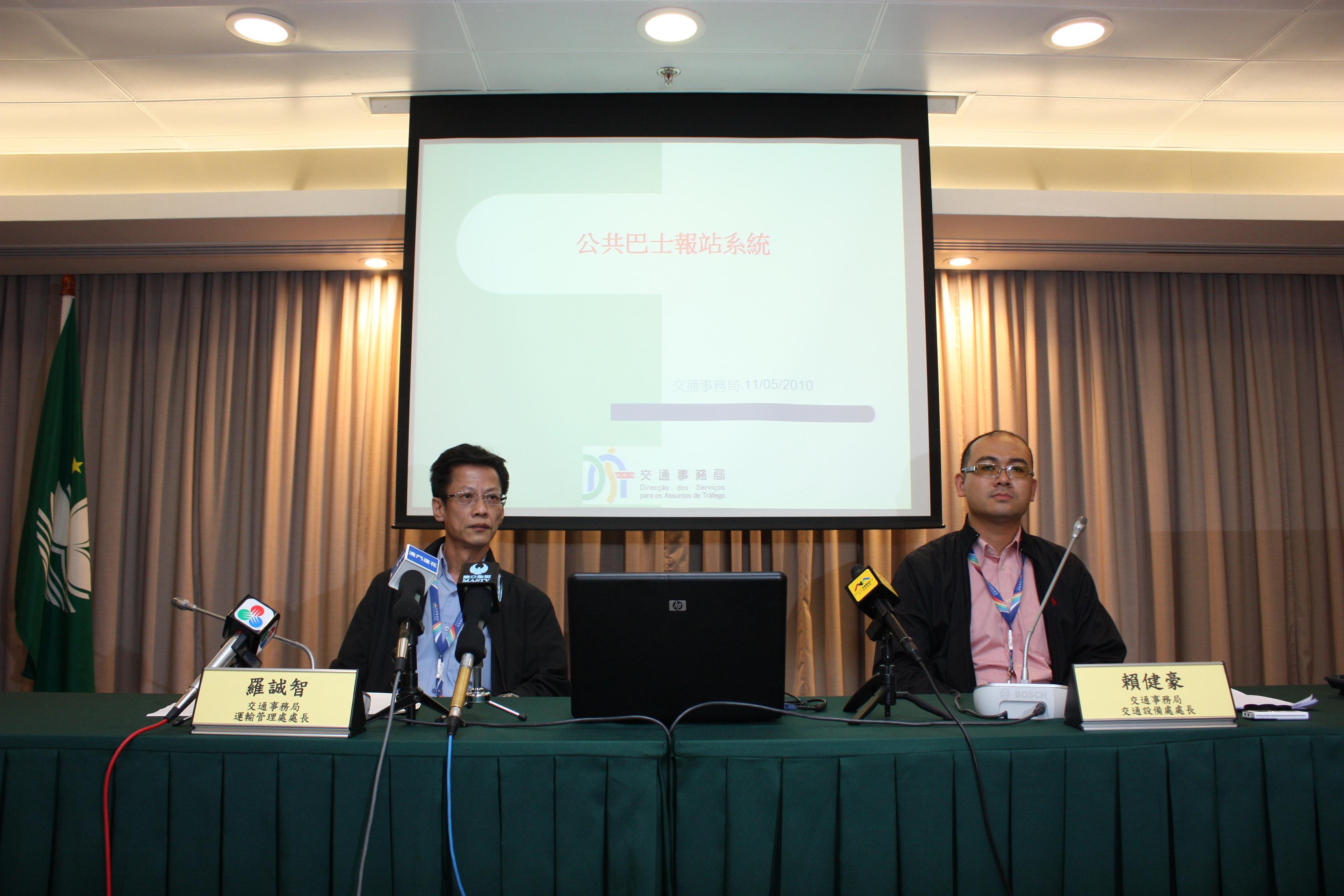 為配合公交的科學化管理、提供及時公交資訊、便利市民和旅客出行,以及逐步實踐本澳智能交通系統的建立,交通事務局成立後,積極開展智能交通系統的構建工作,當中包括建立“公共巴士報站系統”,相關報站系統經過逾一年詳細研究後已趨向成熟。就此,局方選定了高士德/亞利鴉架街、新馬路(近民政總署)、中區/殷皇子馬路(近初級法院)、水坑尾街及昌明花園五個巴士站安裝相關報站系統,同時又選定3號、11號及25號線巴士路線一併進行測試,配合有關測試,近月亦在五十多台巴士安裝相關硬件,並初步完成軟件的整合工作。
