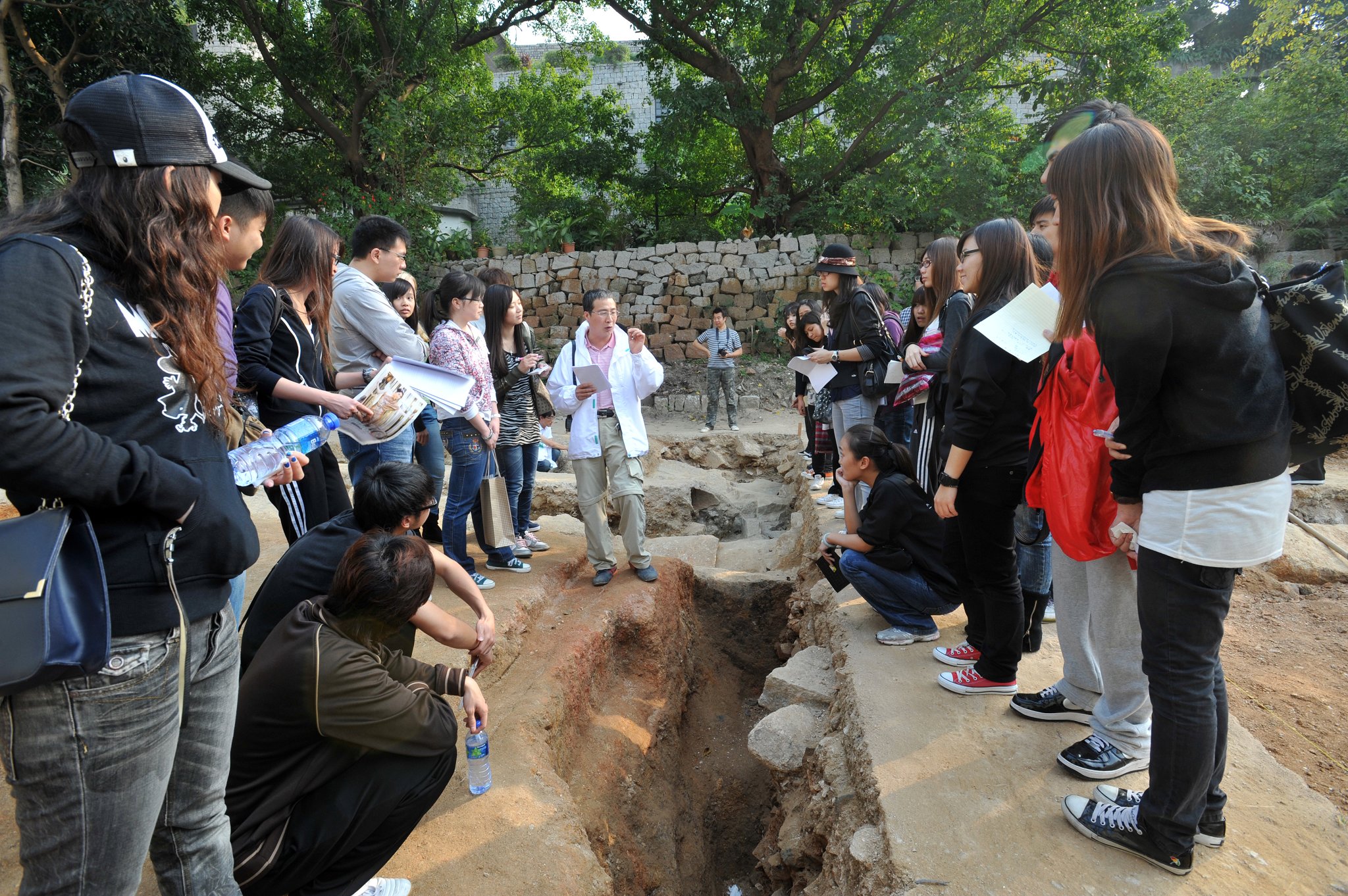 文化局現正於聖保祿學院遺址的考古工作,日前吸引了澳門旅遊學院文化遺產管理與保護課程二年級學生前往學習,透過實地考察、親手操作,讓學生了解本澳文化遺產的發掘、保護及管理工作,增加了專業知識,提高了文保視野,收獲甚豐。