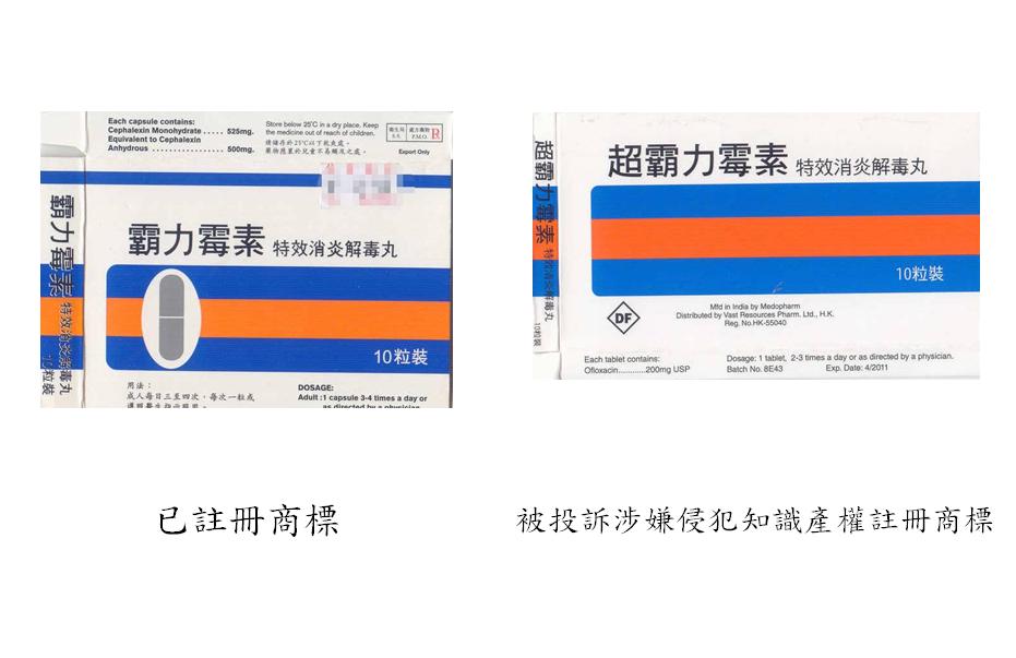 有關涉嫌偽冒【霸力霉素】特效消炎解毒丸產品之外觀包裝及顏色十分相似,只在【霸力霉素】前加上“超”字,成為【超霸力霉素】特效消炎解毒丸。購買者若稍一不慎,很容易誤購涉嫌侵犯知識產權的藥品。