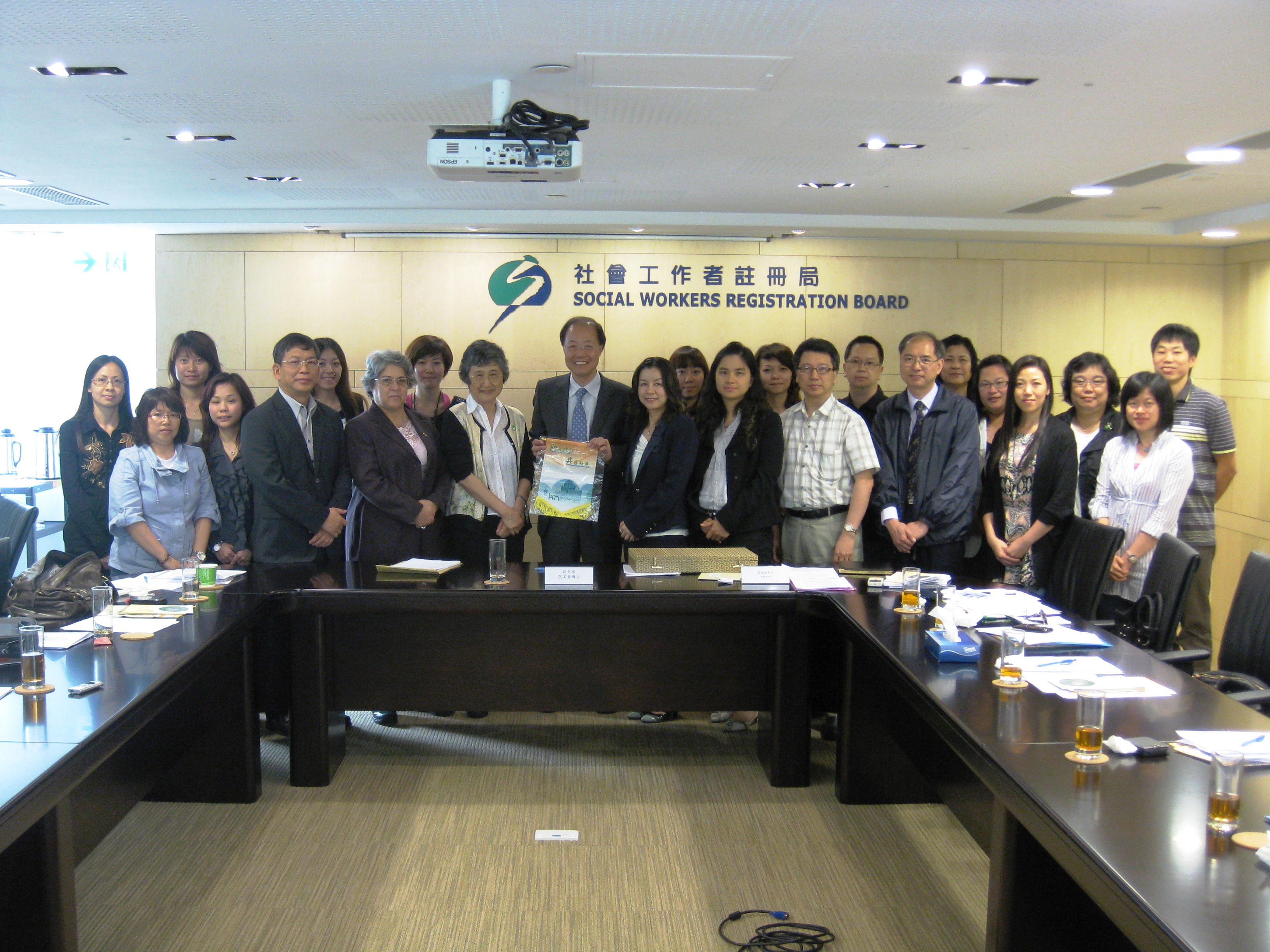 探訪團一行二十人於四月二十七日前往香港,先後拜訪了香港「社會工作者註冊局」及「香港理工大學」。 香港「社會工作者註冊局」是根據「社會工作者註冊條例」成立的一個法定組織,旨在透過監管機制,監察社會工作素質,最終達至保障服務使用者和公眾的利益。訪問團獲香港「社會工作者註冊局」副主席及「理工大學」教授的熱情接待,詳細講解了當地就社會工作者註冊制度中,執行單位的籌建、社工課程審批的考慮、倫理守則的擬定及社工持續進修發展和現況等。會面期間,訪問團成員作出了多方面的提問,為交流營造了良好的互動氣氛。