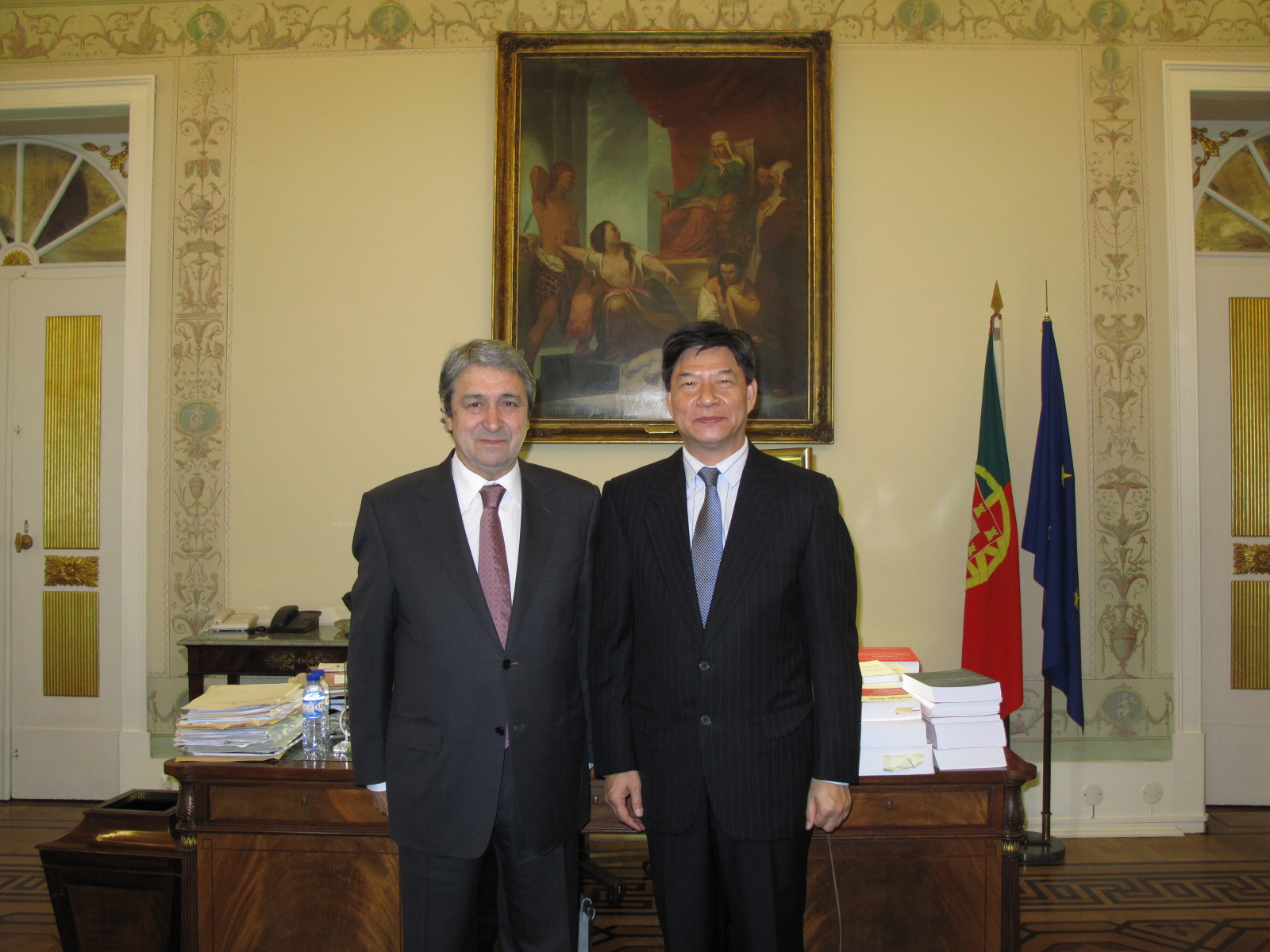 會後,何超明檢察長順訪葡萄牙檢察院,並與葡萄牙總檢察長進行會面。會見中何超明檢察長表示回歸以來澳門特區檢察院與葡萄牙檢察院一直以來保持著良好的交流合作,何超明檢察長感謝葡萄牙總檢察長批准幾位葡籍檢察官來澳工作,葡萄牙總檢察長表示十分感謝澳門檢察院每年都把澳門最新的法律法規及資料贈送給葡萄牙檢察院,希望日後雙方的司法機關能夠加強互相之間的交流與合作。