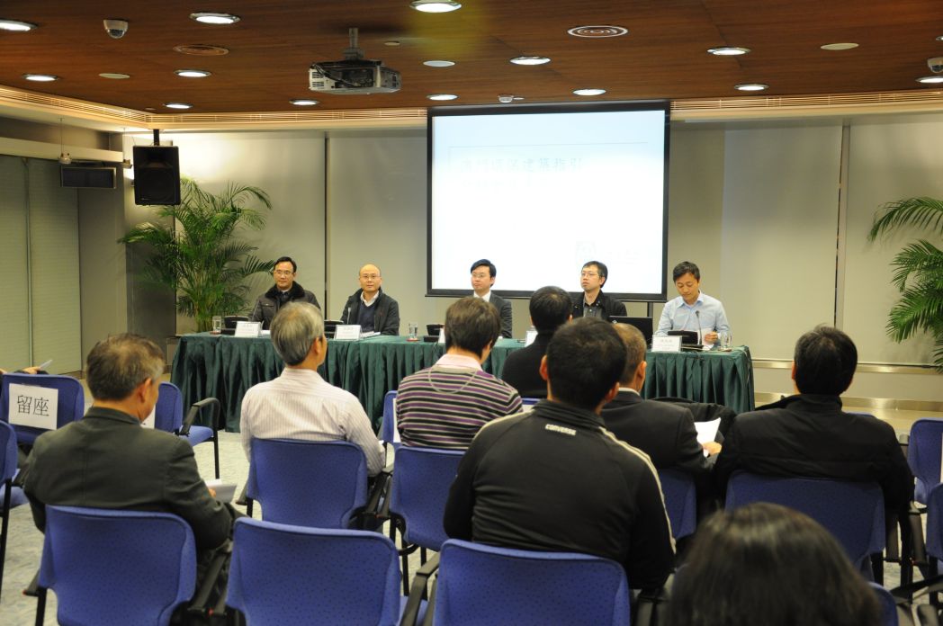 為使各相關政府部門、建築業界及環保團體認識指引內容,以及收集更多意見,環境保護局分別於2011年12月28日及29日舉行兩場“環保建築指引介紹會及意見交流會”。會上,澳門建築師協會介紹了有關建築規劃和設計方面的內容,包括場地環境規劃、交通網絡、建築功能及節能設計等方面;而澳門工程師學會則介紹施工管理及材料技術應用方面的內容,主要圍繞照明、空調、電力、升降機和扶手電梯等設備及技術作介紹。