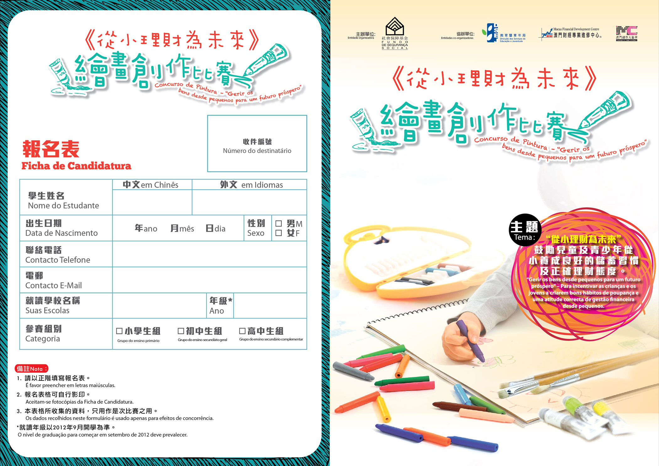為了鼓勵兒童及青少年從小養成良好的儲蓄習慣及正確的理財態度,由社會保障基金主辦,教育暨青年局、澳門財經專業進修中心及澳門創作人協會協辦的“從小理財為未來”中小學生理財繪畫比賽即日起接受報名,收件日期由7月2日至9月28日,歡迎全澳全日制中小學校學生報名參加。