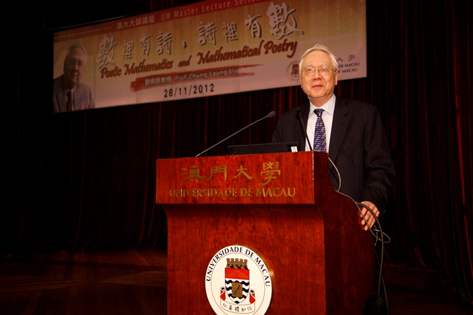 國際知名計算機科學家、澳門大學榮譽博士、知名教育專家劉炯朗教授今(廿八)日於澳大文化中心主講題為「數裡有詩,詩裡有數」的大師講壇,除澳大教職員與學生外,還有來自澳門多間學校的師生以及大批公眾蜂擁而至,全場座無虛席。