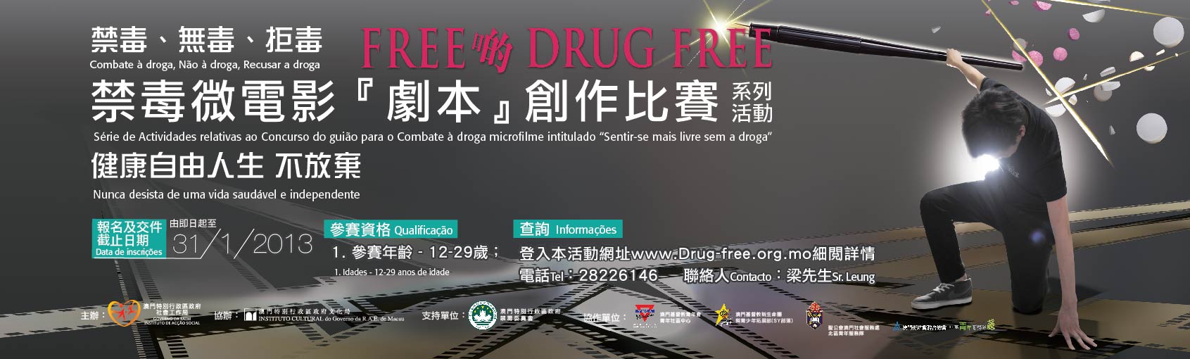 有興趣人士可登入www.drug-free.org.mo下載比賽章程、報名表格。如欲查詢活動詳情,可致電28226146與「活動聯絡組協作單位 - YMCA青年社區中心」梁先生聯絡。