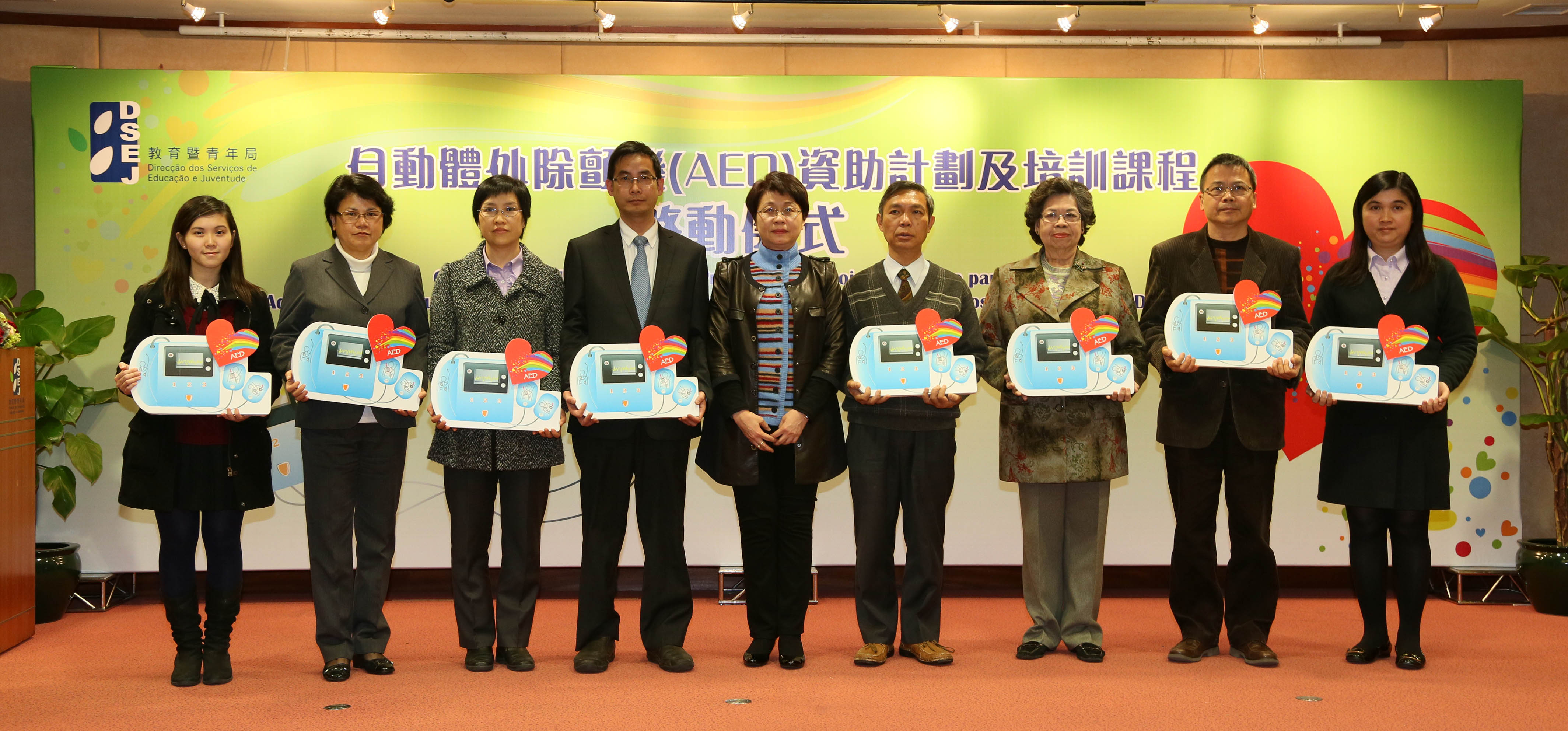 為進一步優化校園安全的環境,加強教職人員在學生出現突發事件時的應急能力,教育發展基金於二O一二/二O一三學年起支持本澳各中、小學校添置自動體外除顫機,計劃於本學年共收到逾七成學校的資助申請。教育暨青年局於一月二十九日下午舉行“自動體外除顫機(AED)資助計劃及培訓課程”啓動儀式,正式啟動有關資助計劃及相關的培訓課程。