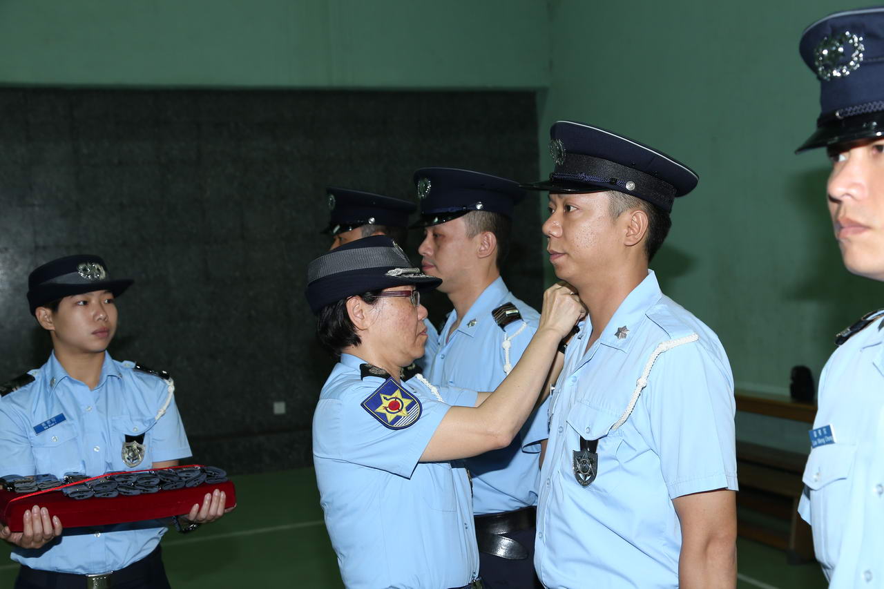 今天(二十九日)中午12時,在特警總部室內運動場舉行了晉升首席警員晉升儀式。儀式由治安警察局局長李小平警務總監、副局長黎錦權及梅山明副警務總監主持。出席儀式的還有局內各部門的廳長及負責人,為同僚作出祝賀。