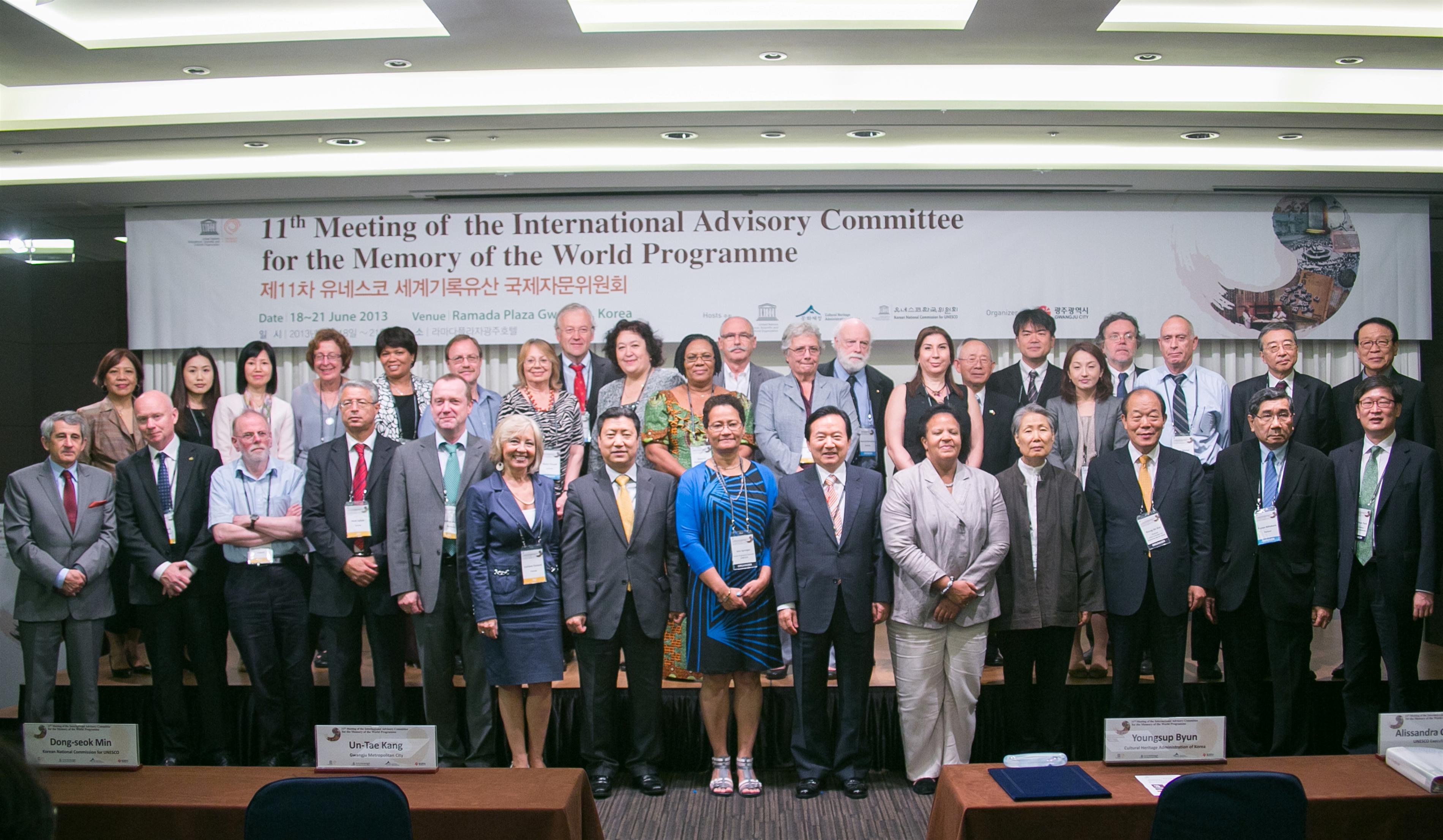 會議開幕式由韓國光州市長姜雲太、UNESCO行政委員會主席 Alissandra Cummins、高級項目專家Joie Springer, 以及韓國國家文化遺產官員等主持,UNESCO國際諮詢委員會委員及觀察員合共30多人出席。一連四天的內部會議主要回顧世界性的文獻保育及推廣工作,並訂定未來十年內的發展目標、經費預算,以及通過了成立針對文獻申報、教育培養、科技等範疇之小組委員會,會議亦評審了入選《世界記憶名錄》的文獻遺產。