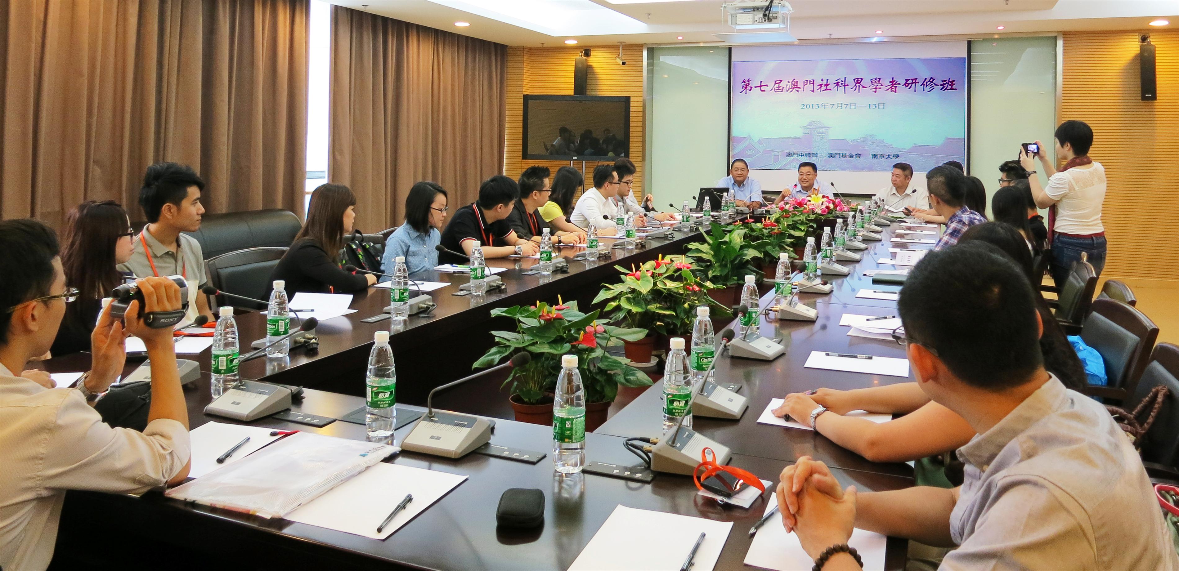 為促進澳門與內地文化藝術界的交流與聯繫、觀摩內地文化產業的有益經驗、加強本澳文化藝術領域高級人才的培養,中聯辦文化教育部、澳門基金會及南京大學於2013年7月7日至13日在南京聯合開辦 ──“2013第七屆澳門社科界學者研修班”活動。