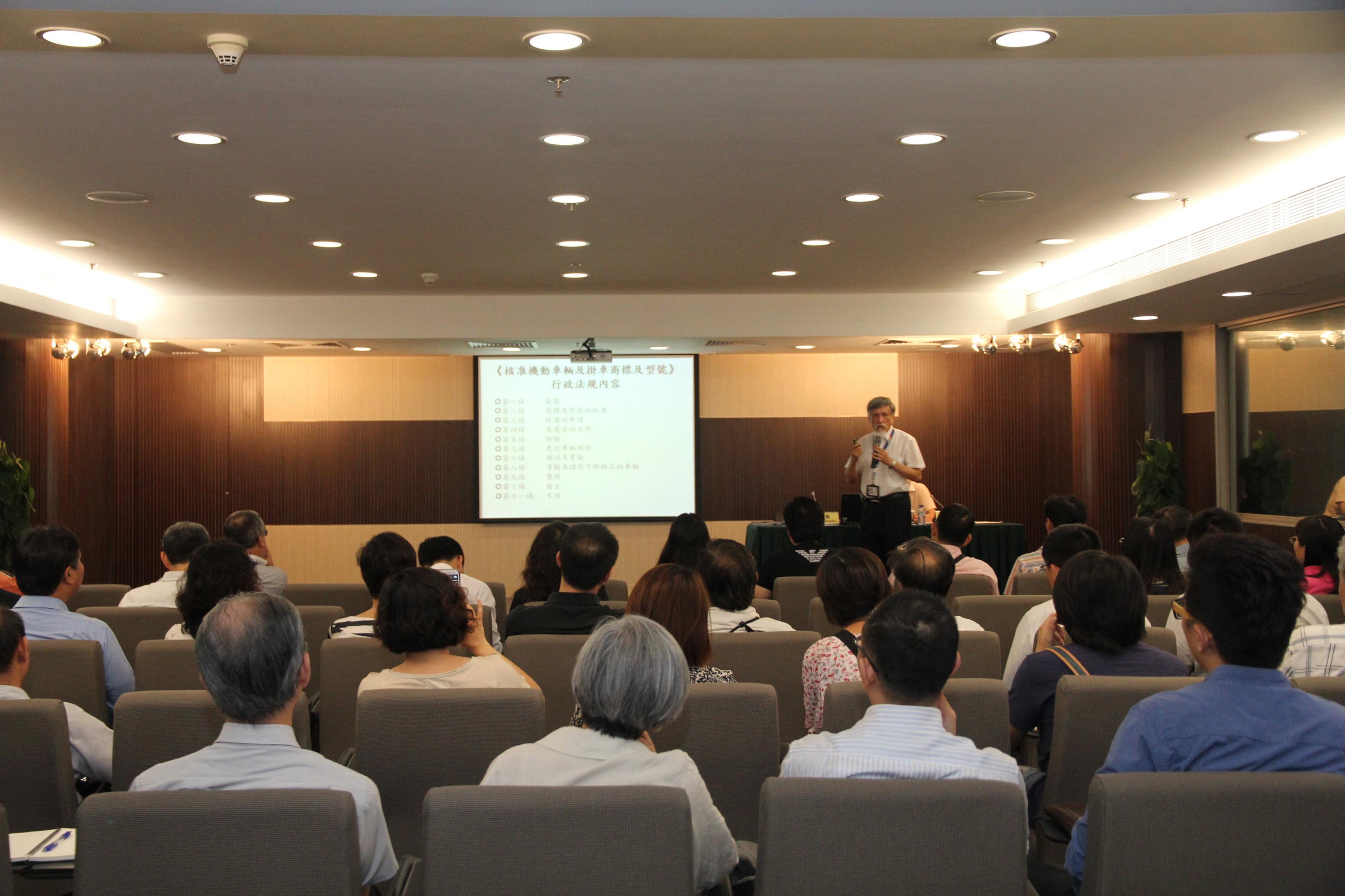 交通事務局舉行解釋會,向車輛進口及銷售業界介紹《機動車輛、掛車及半掛車的商標及型號的核准》行政法規及修改《道路交通規章》部分條文的相關內容和注意事項。交通事務局車輛及駕駛員事務廳廳長賈靖龍表示,相關法規的修訂主要為清晰條文內容,及刪除部分已不合時宜的修文,藉以簡化核准程序和提升效率。