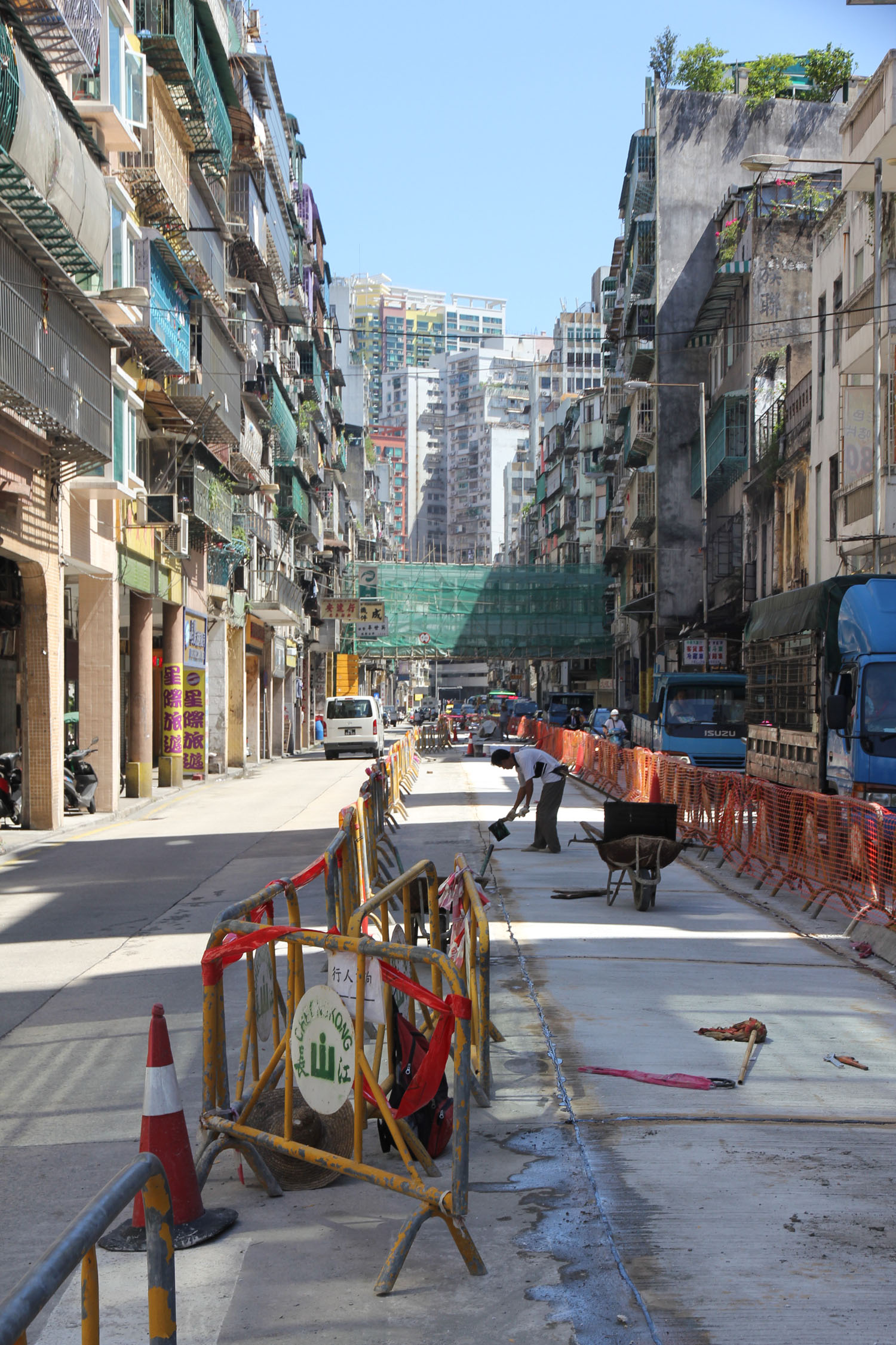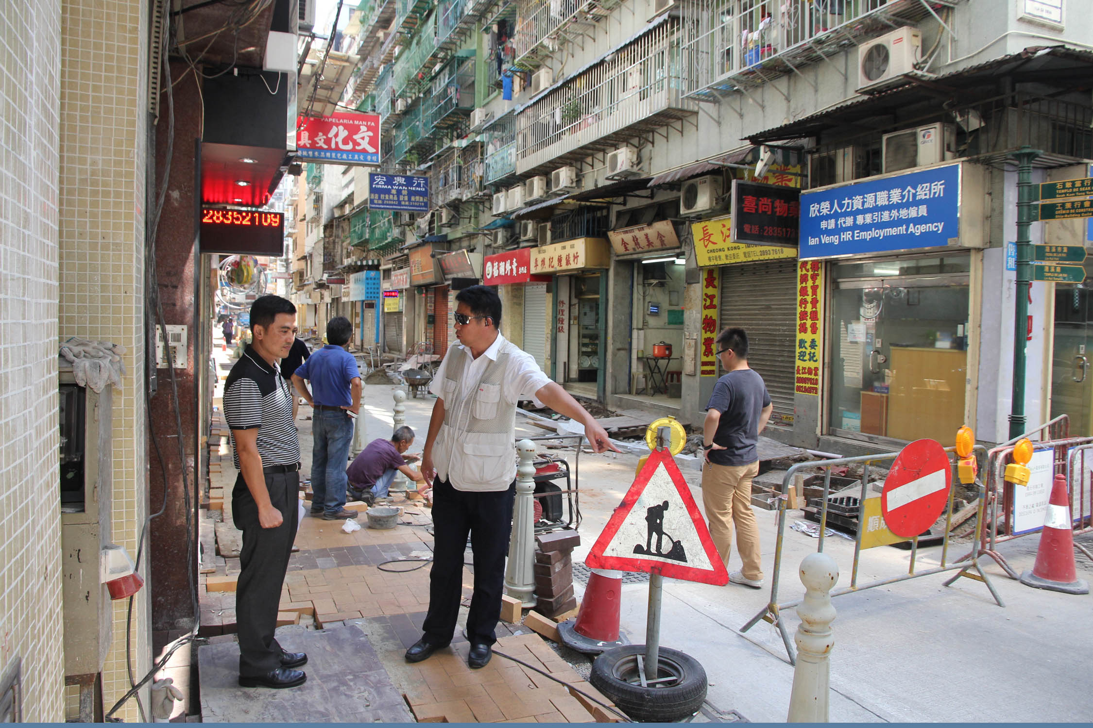 交通事務局交通管理廳協調處莫垂道處長日前視察各路段施工情況,並督促承建商加緊施工進度。今年暑假已開展的道路工程約30項,如:渡船街及西坑街的行人道整治工程、媽閣街及雅廉訪大馬路下水道整治工程、北京街及沙梨頭海邊街重鋪路面工程、新口岸區第二期行人道及馬路整治工程、美副將大馬路及約翰四世大馬路更換水管、聚寶街電纜維修、山邊巷的街渠接駁、氹仔運動場道和柯維納馬路路面重鋪、科英布拉街的道路整治、紅窗門、高樓街、船廠巷、氹仔飛能便度街因新建大樓落成需要進行水、電及電訊管網鋪設工程以及路環高頂馬路的管線鋪設等。當中有10多項為跨年度工程,如:沙梨頭北街建造泵房工程、高勵雅馬路行人天橋工程、輕軌系統建設工程、路氹連貫公路下層行車道工程、路環管線鋪設工程等。