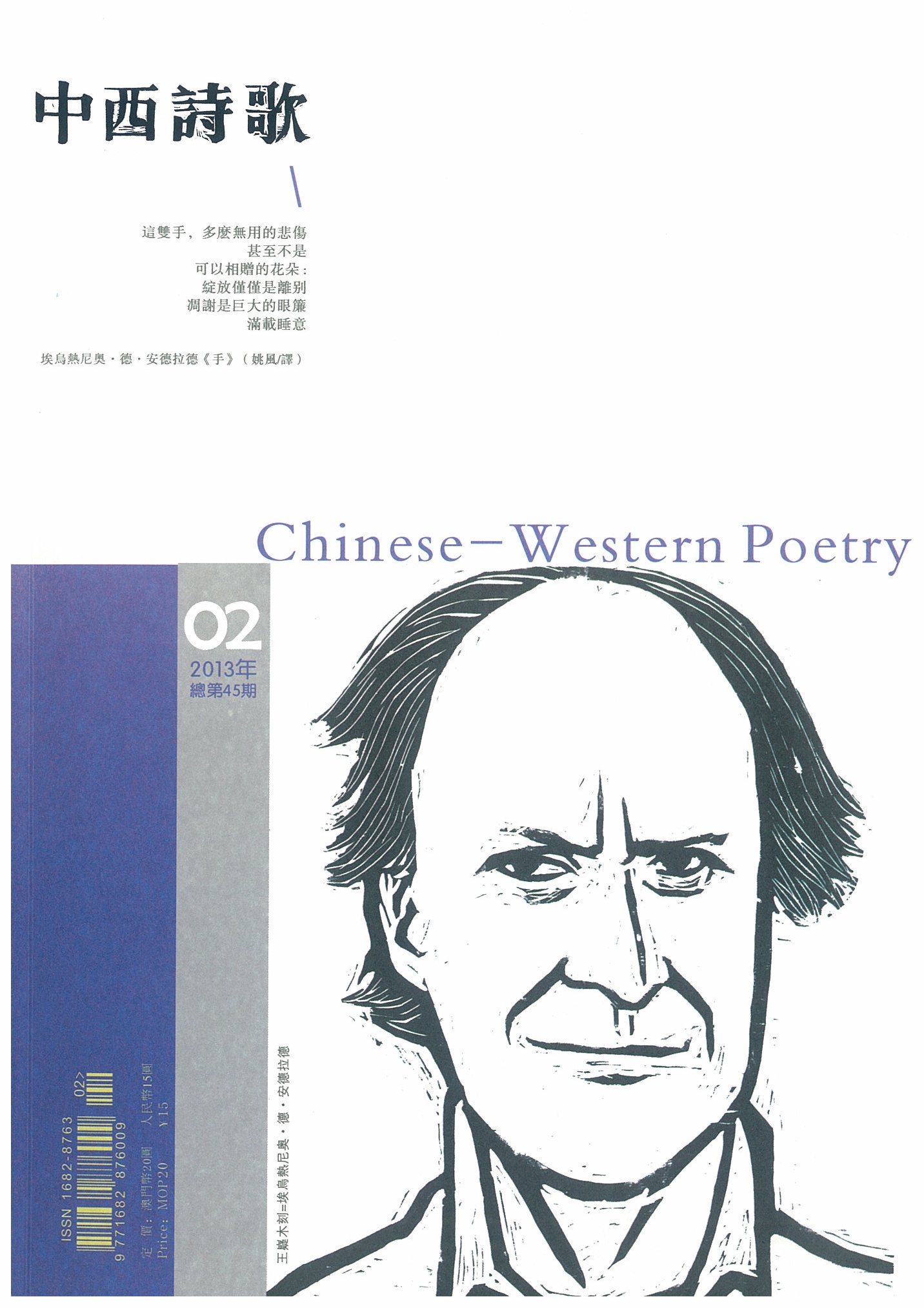 第45期的《中西詩歌》經已由澳門基金會、廣東省作家協會詩歌創作委員會、珠海市作家協會聯合出版。《中西詩歌》以尊重自由和開放包容的精神,為詩人與詩歌本身建造呈現真我、百花齊放的創作園地。