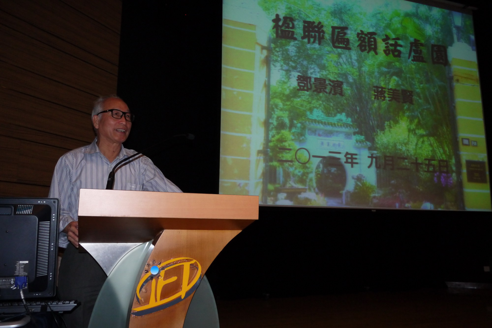 學校自2007年推出澳門文化導遊課程以來,啟發了不少導遊對本澳歷史文化的興趣,繼而作深入鑽研並熱衷於與其他導遊及有興人士分享成果。這次旅遊學院誠邀近代文學學會會長鄧景濱博士主講於9月25日舉行的【楹聯匾額話盧園】文化旅遊講座,主要介紹盧園的歷史沿革、盧園三美探勝及園內聯匾賞析。盧廉若公園是港澳兩地最具蘇州園林風韻的名園,其規模之大,為澳門私家花園之最。其內建築中西合壁,別具特色。盧廉若公園有三美:一為自然美,二為建築美,三為聯匾美。是次講座以園內之楹聯匾額為題,結合園內之自然景色和樓亭建築,分析其為園林建築描畫點睛之社會功能及文學價值,加深對澳門文化遺產盧園勝景之認識和熱愛,從而激發熱愛澳門鄉土之濃烈情感。