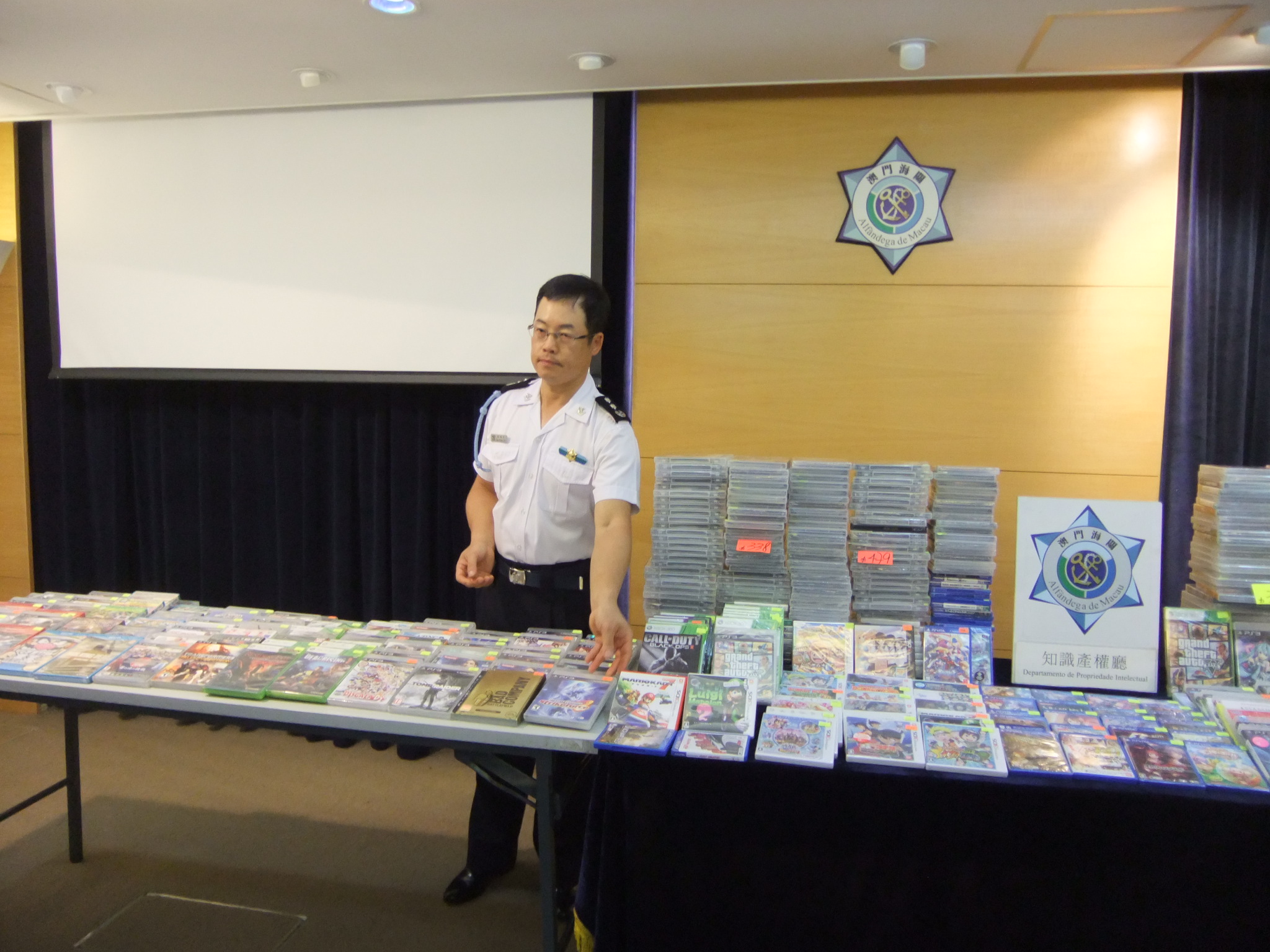 澳門海關知識產權廳於“十•一”黃金週期間,在澳門各區採取巡查行動,結果揭發三間分別位於中區和北區的店舖未向當局申請「預先通知」而售賣光碟。行動中檢獲遊戲光碟及遊戲軟件連包裝盒共四百九十四套,市值約為十五萬澳門元,一男一女店舖負責人被帶返海關總部協助調查。海關在此提醒業界相關人士在進行「電腦程序、錄音制品及錄像制品之商業及工業活動」時切記進行相關手續申請,經批准後方可營運,以免觸犯相關法律法規。