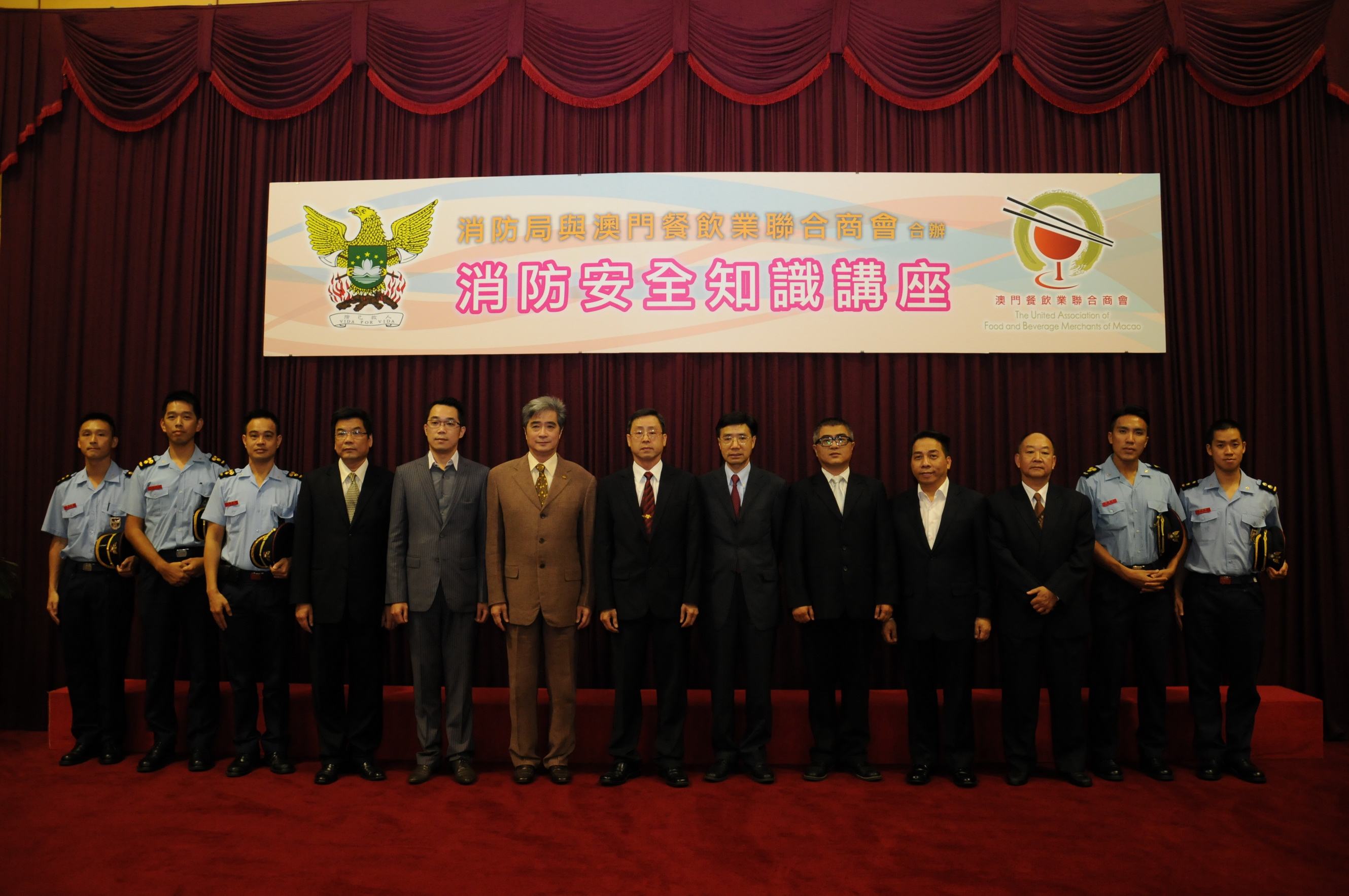消防局於2013年10月08日,在消防局總部暨西灣湖行動站為澳門餐飲業聯合商會舉辦了一場消防安全知識培訓課程,商會共有150人參與。