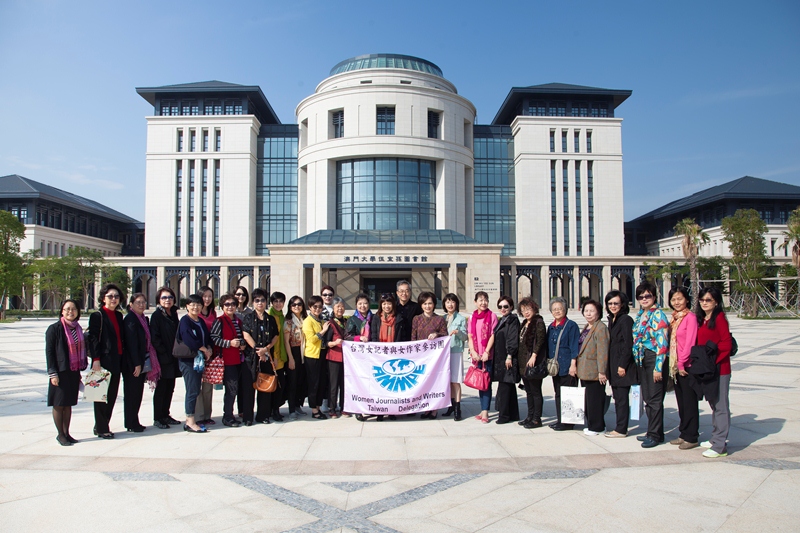 此外,參訪團一行還特意參觀了澳大新校區。世界女記者及作家協會台灣分會理事長傅依萍表示對新校區印象深刻,認為大學的師生非常有福氣。該會常務理事沈春華也認為澳大師生很幸福,寄語學生在“新起點”要有“新思維”,促進大學軟實力的發展。