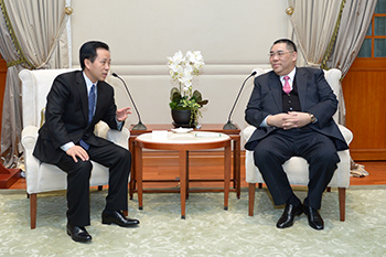 行政長官崔世安今(19)日在政府總部與廣東省委常委、珠海市委書記李嘉一行會面,回顧及展望新一年的澳珠合作。