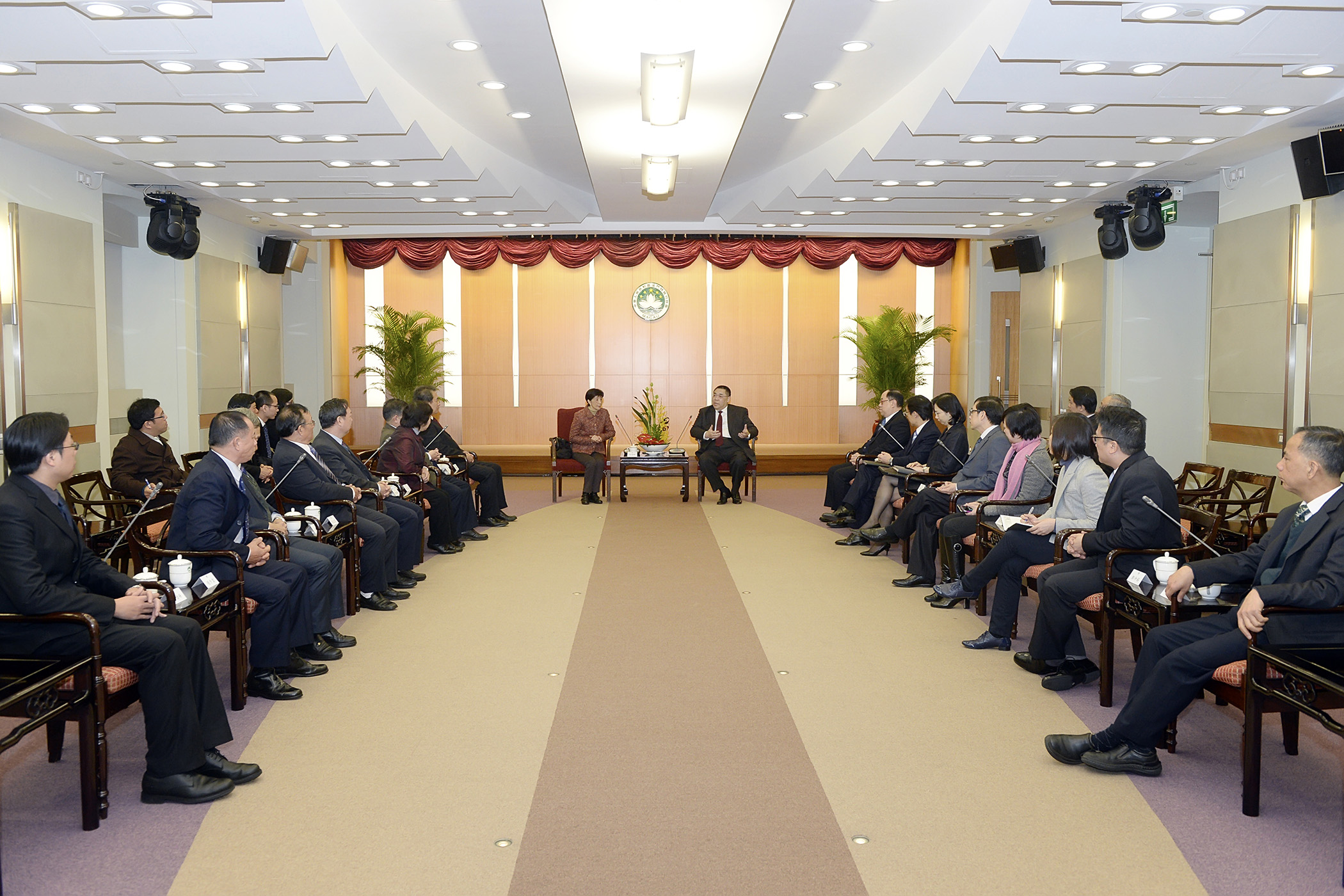 行政長官向工聯會新一屆理監事表示祝賀,希望該會繼續服務社會。他指出,工聯會長期服務社會,是本澳具有影響力的團體之一,特區政府將繼續支持工聯會發展會務,也樂意聽取該會對勞工及其他社會事務的意見。