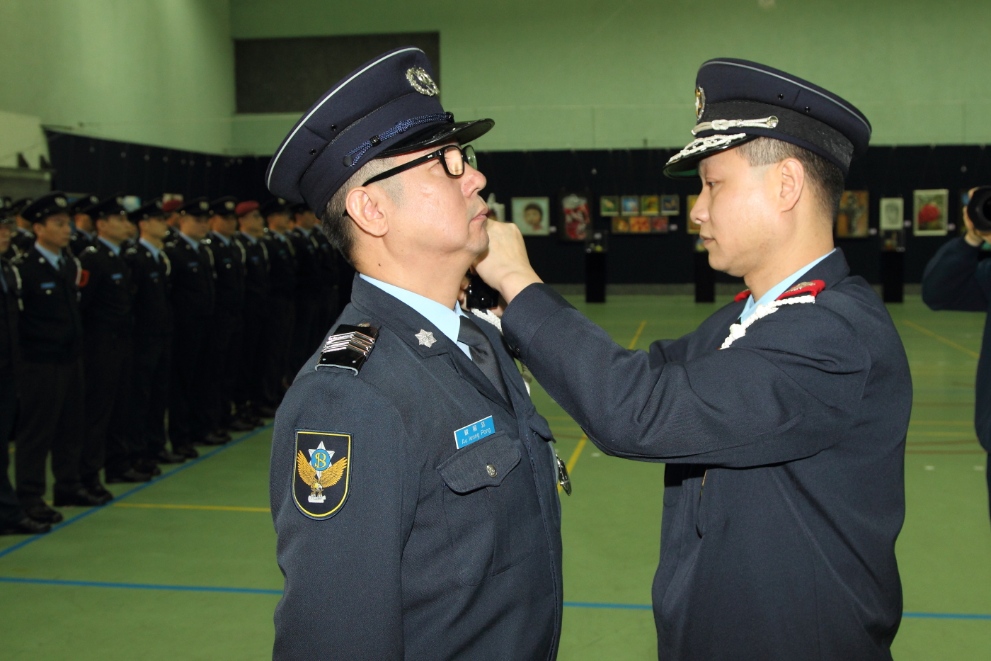 今天(3月10日)中午12時,在特警總部室內運動場舉行了首席警員晉升儀式。儀式由治安警察局局長馬耀權警務總監、副局長黎錦權及梅山明副警務總監主持。出席儀式的還有局內各部門的廳長及負責人,為同僚作出祝賀。
