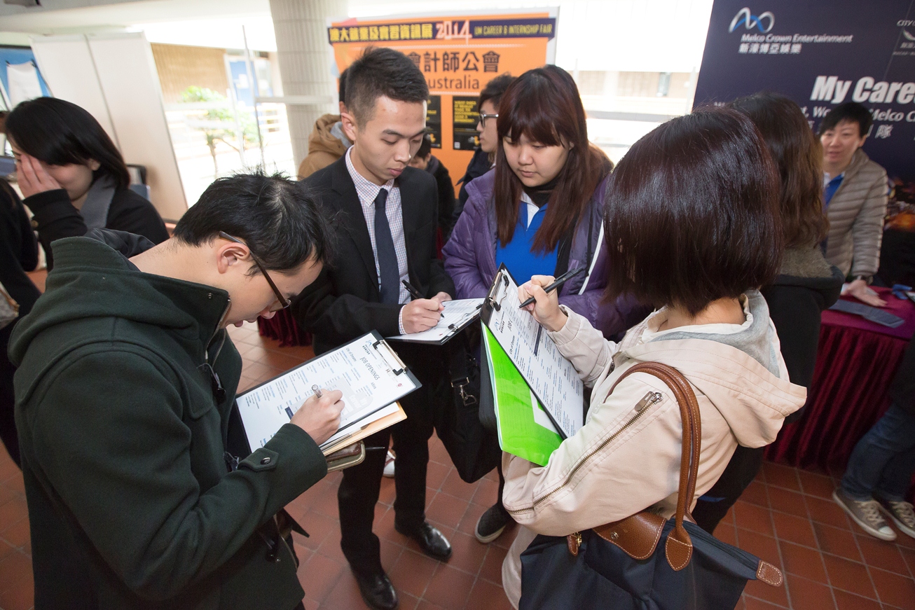 澳門大學今日起一連五日舉行二○一四年度澳大就業及實習資訊展,吸引超過六十五家企業為應屆畢業生提供逾二千三百個職位空缺,並為大二及大三學生提供實習機會。期間,澳大還將舉行三十場招聘講座,向學生介紹職業生涯規劃、就業方向和發展前景等。