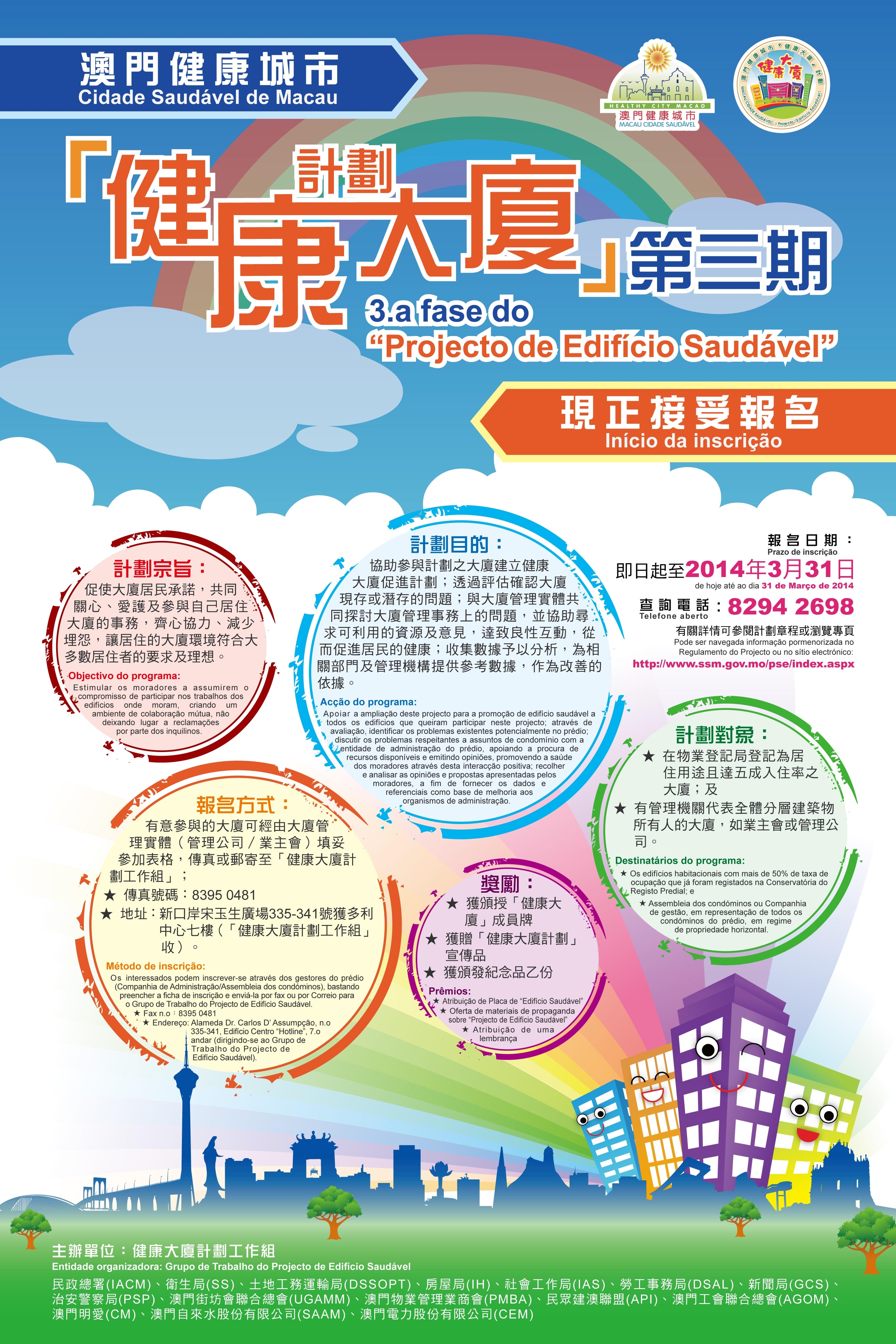 健康城市委員會健康大廈計劃工作組主辦的第三期「健康大廈計劃」,由即日起至3月31日接受報名,目標招募100幢新大廈加入。健康大廈計劃旨在促使大廈居民共同關心、愛護及參與大廈的事務,齊心協力讓居住的大廈環境符合大多數居住者的要求及理想。