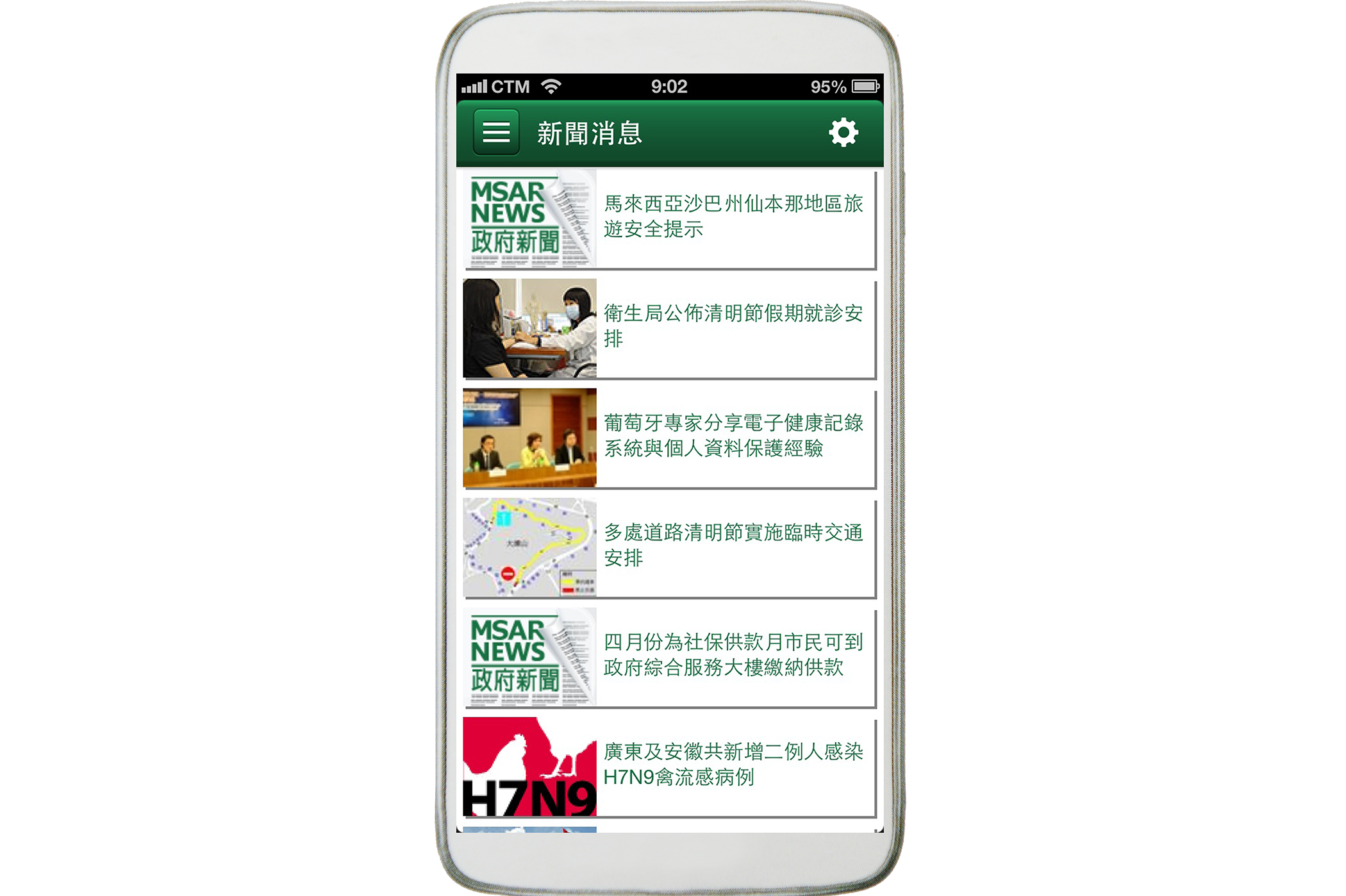《澳門政府新聞》應用程式同時適用於iOS (5.1或以上版本)和Android(4.0或以上版本)系統,用戶只需在App Store 和Google Play輸入中文「澳門政府新聞」,或英文「MSAR News」便可搜尋及免費下載該程式。