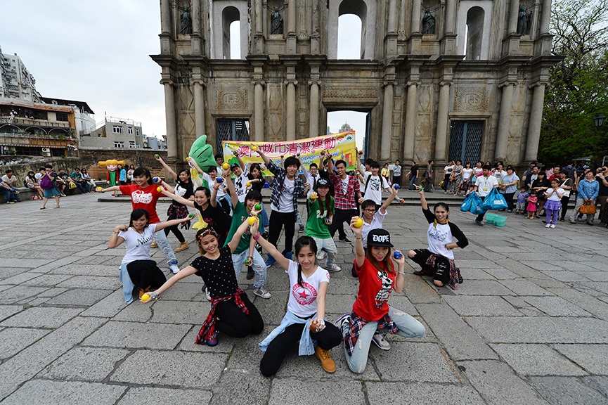 另外,民署亦於媽閣廟前地、板樟堂前地及大三巴牌坊等旅遊熱點舉行了快閃舞蹈街頭表演,由二十名年輕舞蹈員佯裝遊客,走進人群當中,音樂突然響起,舞蹈藝員即時以人流如鯽的旅遊區當作舞台,演出十五分鐘融合街舞、爵士、短劇等街頭表演,最後配以「澳門城市清潔運動」原創主題曲“清潔澳門”編排的舞蹈,向圍觀的遊客及市民展示“澳門歡迎你 請保持城市清潔!”之訊息,舞蹈員更連同工作人員手持印有「澳門城市清潔運動」吉祥公仔“家潔”及《公共地方總規章》內容等訊息的宣傳牌與現場遊客拍照,派發紀念品及宣傳單張等,活動吸引了大批遊客圍觀,反應理想。