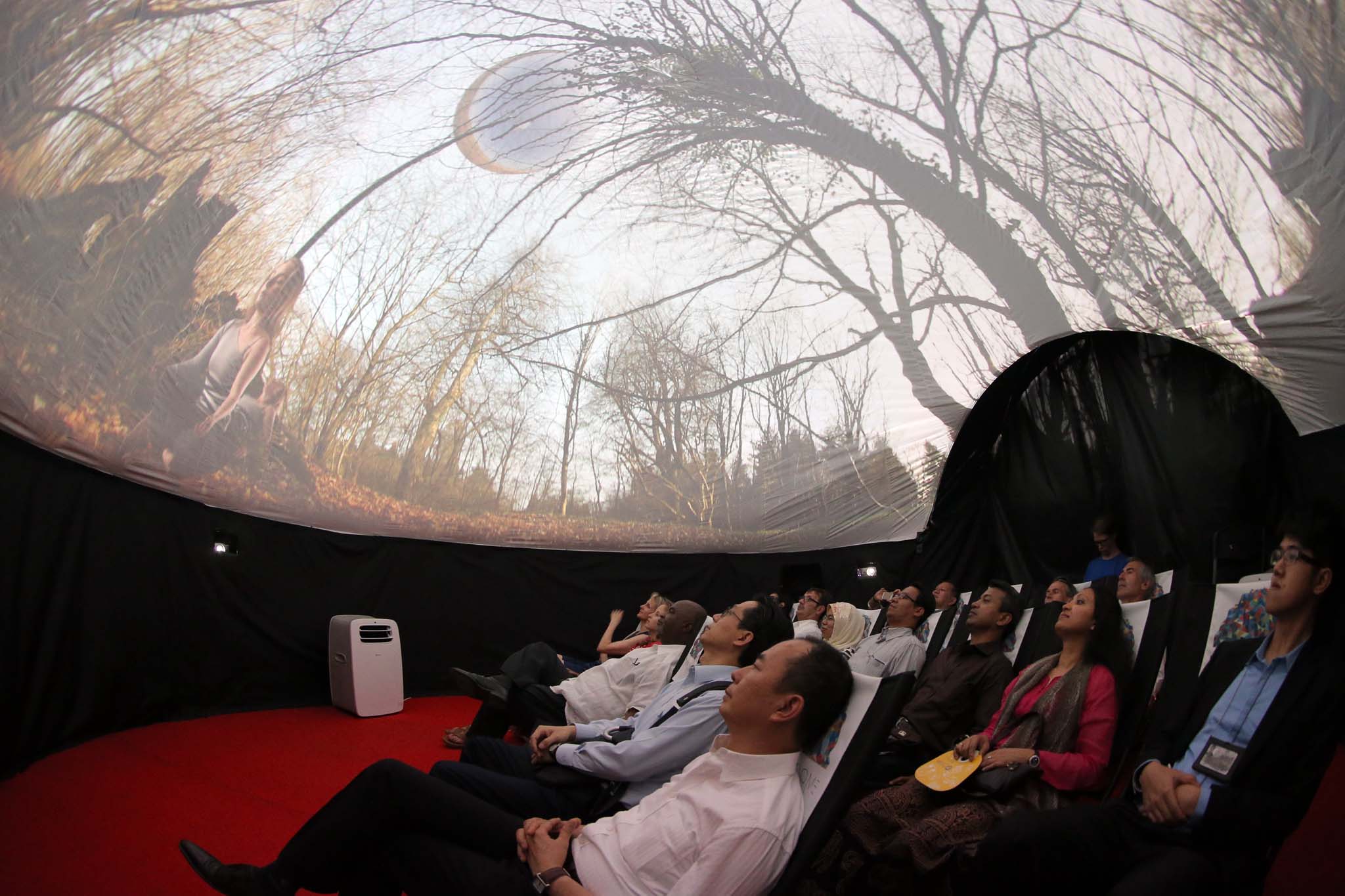 領事團在北帝廟前地搭起的半穹頂放映室內欣賞藝術節《穹頂之舞》演出,觀賞了該節目以環迴影像效果呈獻的跨越舞蹈、數碼特技及影像的短片《美》和《伴》,動感澎湃、刺激震撼;隨後文化局設宴招待領事團,並邀請創作本屆銀禧藝術節壓軸鉅獻《聲光築夢》的MAVA影音藝術團主要代表參與晚宴,向領事團分享創作理念及設計解構,讓來自不同國家的領事們對節目內出現的符號形象等有進一步了解。領事團於晚宴後前往大三巴牌坊觀賞《聲光築夢》,節目透過光影藝術與建築共舞,將大三巴牌坊變成畫布,展示結合光、影、聲的精彩演出,讓觀眾體現澳門的多元文化及人文氣息,領事們均盡興是次藝術節的文化活動之旅。