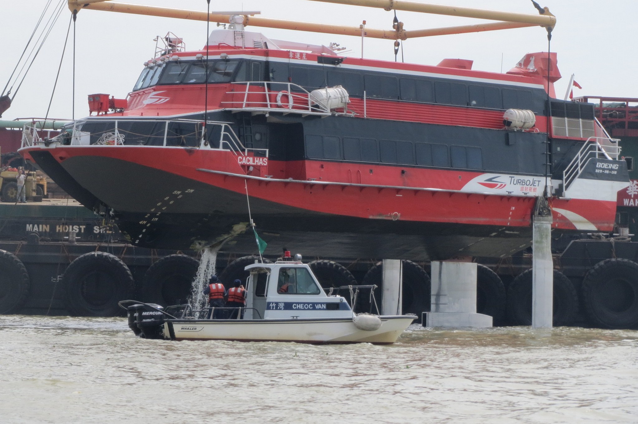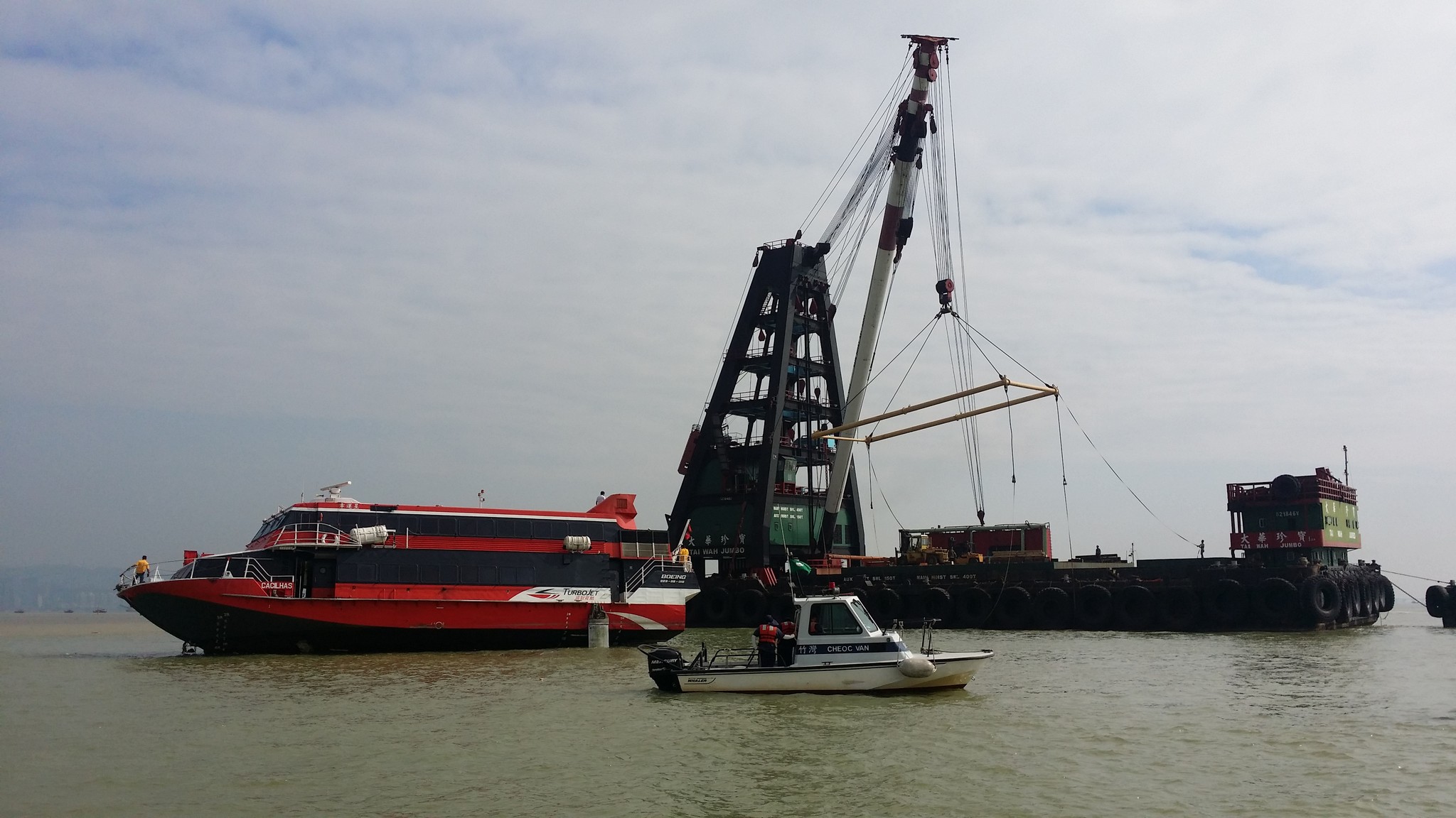 今日早上約8時至10時,船公司的起吊船隊在海事及水務局和海關的協助下,順利完成了擱淺客船起吊工作。起吊工作期間部分外港航道需要實施單向航行管制,而外港客運碼頭的航班則未有受到太大的影響。