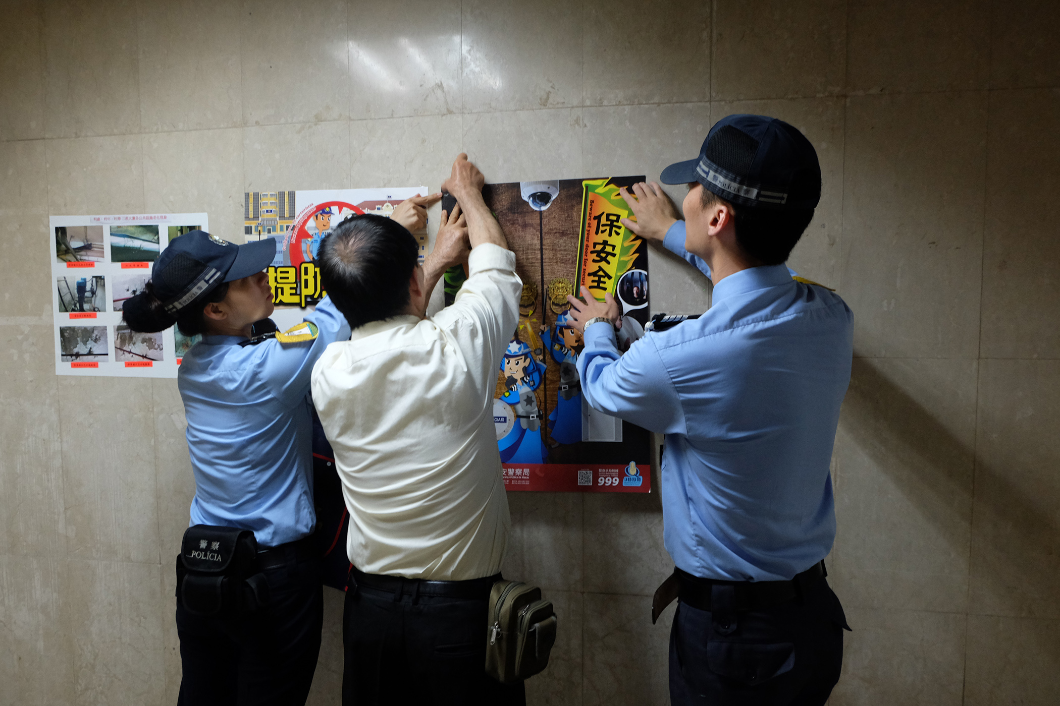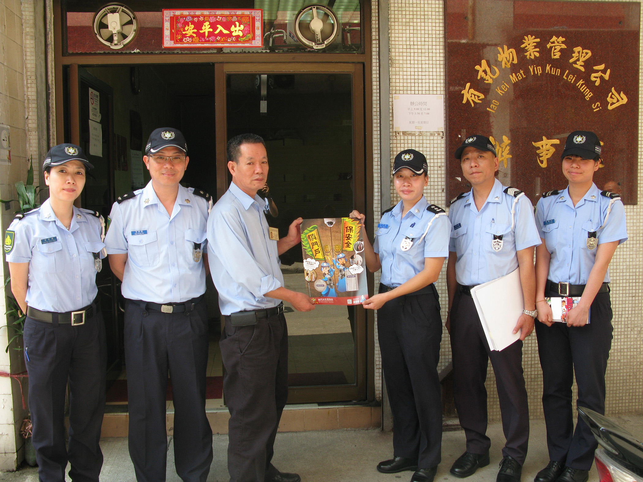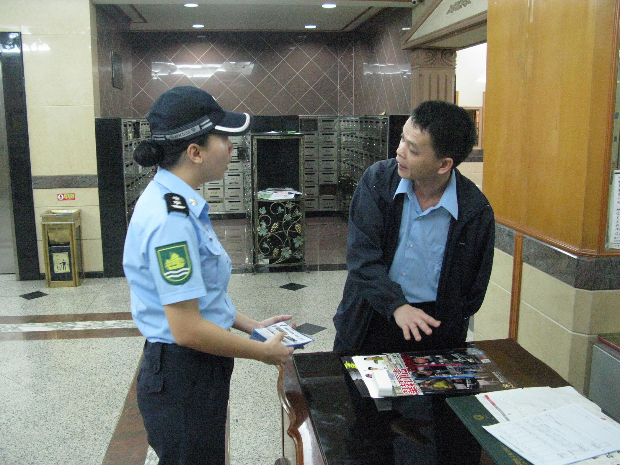 以大廈防盜為例,澳門警務廳與海島警務廳轄下的社區警務主任,多次組織活動,帶領小隊落區宣傳,遍及黑沙環、祐漢、新口岸、離島等三百多幢大廈,透過與市民和管理員的近距離接觸,派發 “慎門戶、保安全”、 “舉報不法”的海報、單張,張貼 “管理員須知”等,帶出『警民合作、淨化社區』的訊息。事實上,本局上半年對區內黑點進行加強監察,結合收集的社區警情,多次在舊區大廈成功搗破非法按摩場所及在旅遊區打擊派發色情單張。