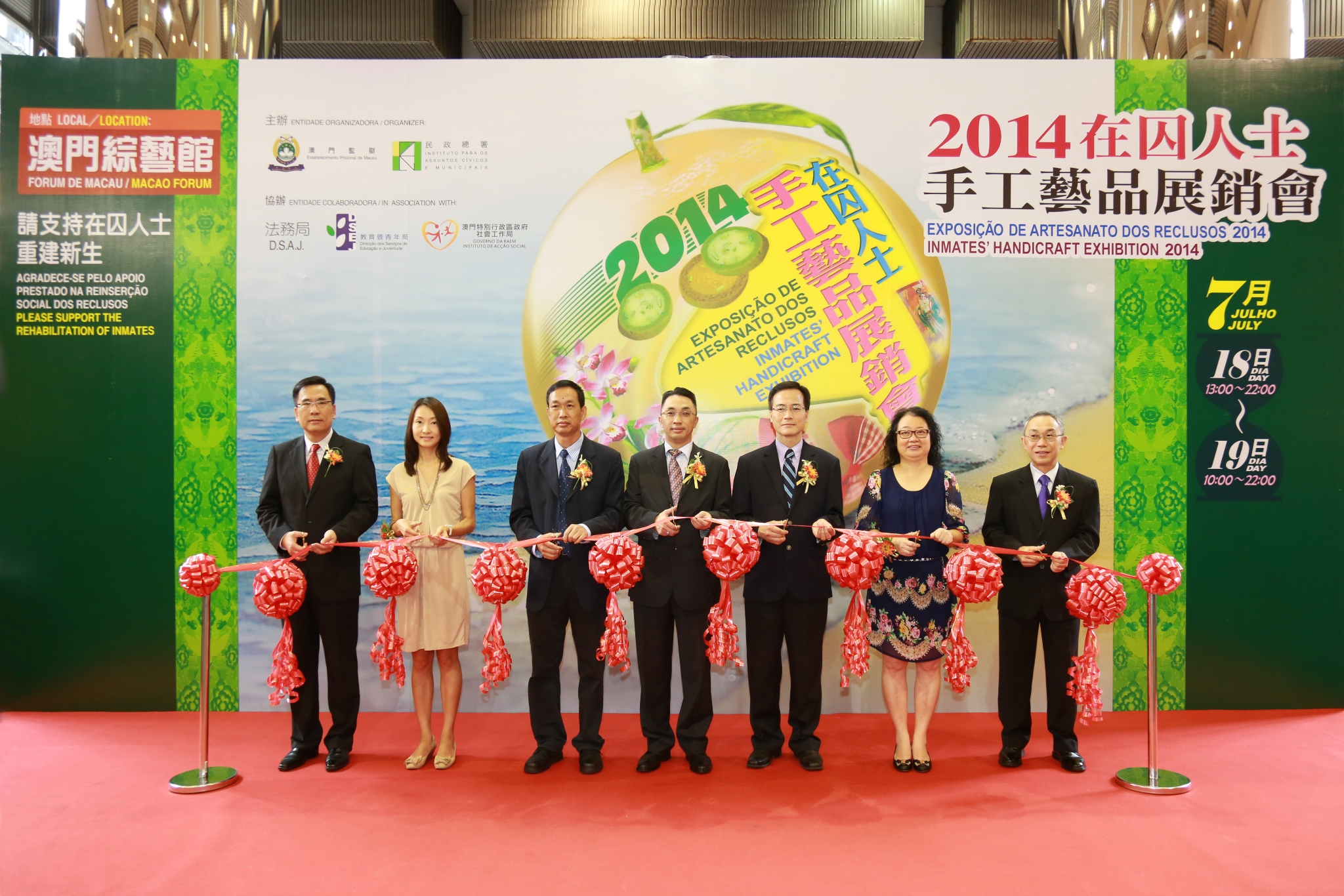 由澳門監獄與民政總署合辦,法務局、教育暨青年局及社會工作局協辦的在囚人士手工藝品展銷會,於本年7月18日上午假綜藝館主前廳舉行開幕禮,展期至19日。獄方冀透過展示在囚人於獄中努力學習的成果,反映他們積極改過的決心,冀社會大眾給予他們重返社會的支持。