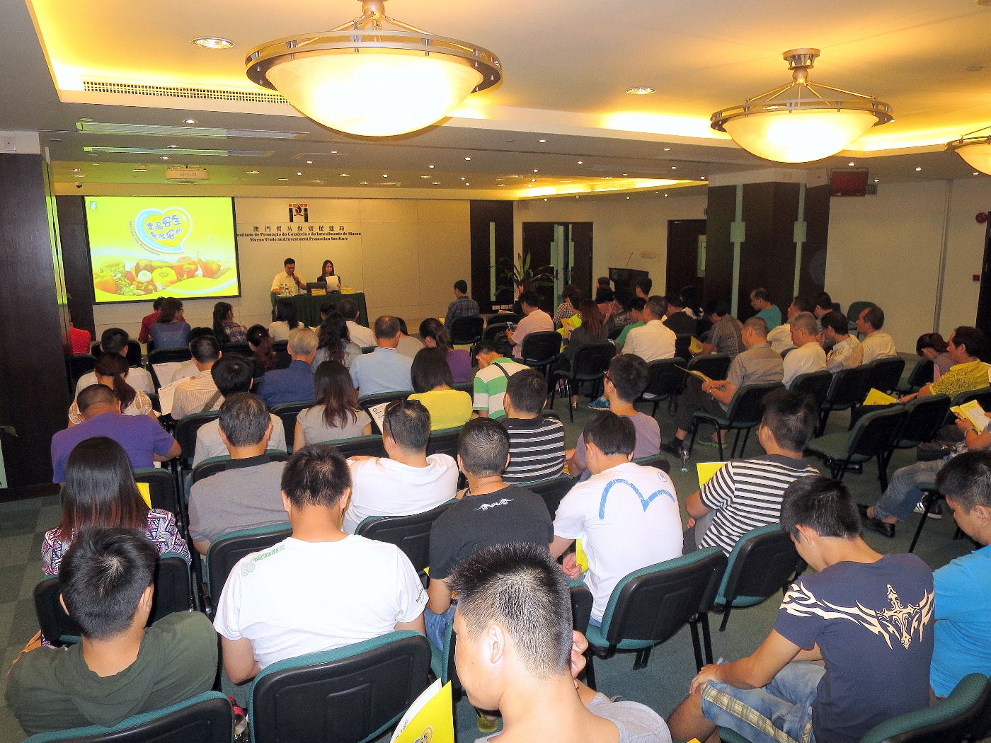 為持續提升業界的食安意識,食安中心邀請貿促局合作,組織經常參與食品展銷活動的食品入口、加工、生產、批發與零售等近百位本澳食品業界代表,參與“食品安全與衛生講座”。講座於八月二十七日在澳門商務促進中心舉行,向業界介紹食品從日常營運及操作流程中要注意的事項,提醒業界慎選貨源、仔細驗收、製備食品時的安全措施以及注重個人衛生等日常容易被忽略的食安要點。同時,因應展銷活動的特點,特別提醒業界須注意食品運輸、展示及存放之衛生條件,監察好存放過程以及展銷食品時的溫度與時間控制。另外,亦簡介了《食品安全法》內容,提醒業界應妥善保留食品進出貨紀錄,與政府保