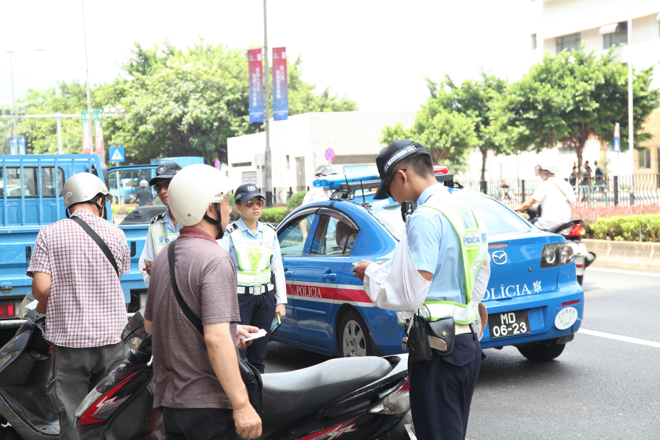 針對學童在道路上安全之情況,治安警察局聯同交通事務局在開學初期展開專門檢控行動,安排前線巡邏警員及交通輔導員於學校上下課期間進行指揮交通及檢控違規情況,藉著以行動加強駕駛者及家長對學童的交通安全意識。今日早上,兩局在林茂海邊大馬路一帶,針對行人違規過馬路、駕駛者不讓行人、對電單車違規乘搭六歲以下的小童以及輕型汽車前座乘搭十二歲以下小童的駕駛者進行檢控行動。