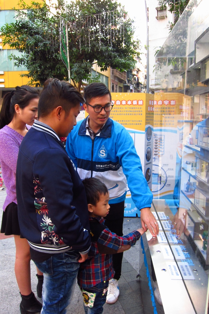 今日下午二時半至五時,小組假三盞燈圓形地舉辦社區推廣活動,今年主題為“定期洗水箱,水質有保障”,現場除了展出節水器具以及樓宇自來水系統模型,還設有多個以“節約用水”和“維護管理樓宇自來水系統”為主題的攤位遊戲,透過輕鬆、互動、有趣的形式介紹節約用水和維護樓宇自來水系統的方法。