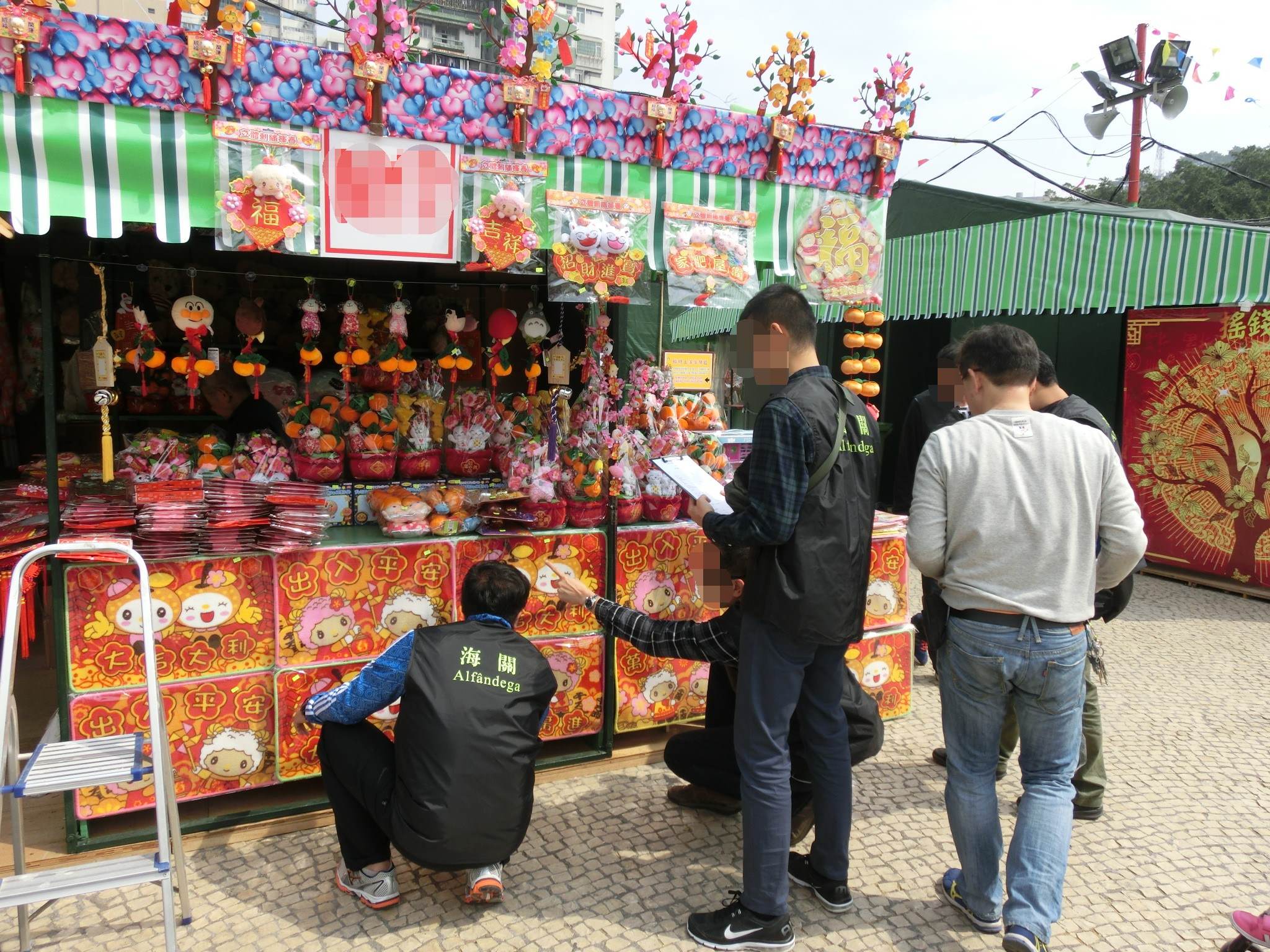 農曆新年將至,澳門年宵市場於二月十一開始正式營業,為預防有不法商人看準時機售賣侵權及冒牌貨品,海關加強人員巡查市面店舖及年宵攤檔。於近日,鄰埠的香港海關搗破冒牌年貨集團售賣侵權貨品,檢獲逾四萬件侵權物品,檢獲的冒牌貨有最近大熱的迪士尼「冰雪奇緣」,另有「Hello Kitty」及「多啦A夢」等品牌的貨品,其餘包括有賀年揮春、掛曆、新年飾物、利是封及小童內褲等。為防止不法商販把有關侵權貨品轉運來澳門銷售,澳門海關知識產權廳關員於農曆新年前後,加強巡查及監察店舖及年宵攤檔售賣年貨產品活動,並向各店主宣傳知識產權保護工作,截至二月十三日,暫未發現相關違法行為。