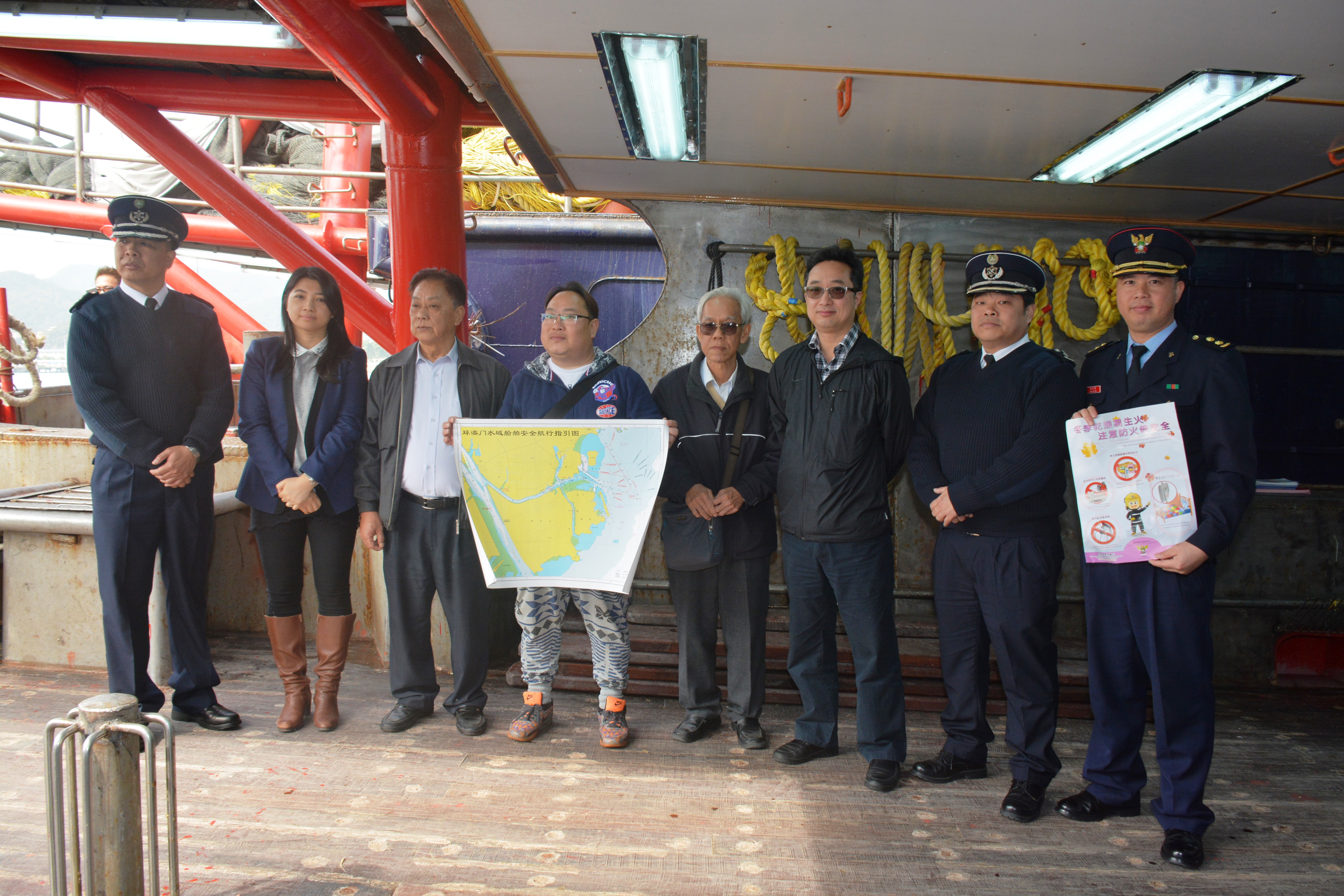 為了避免漁船在內港錨泊期間發生火警意外及偷竊事件,以及防止垃圾污染海上環境,海事及水務局與海關、消防局、漁民互助會及澳門遠洋漁業發展暨船東協會代表今(13)日上午登船探訪漁民,向錨泊在內港的漁船派發海上安全及清潔宣傳品,藉此提高漁民對防火、防盜的警覺性及防污意識。