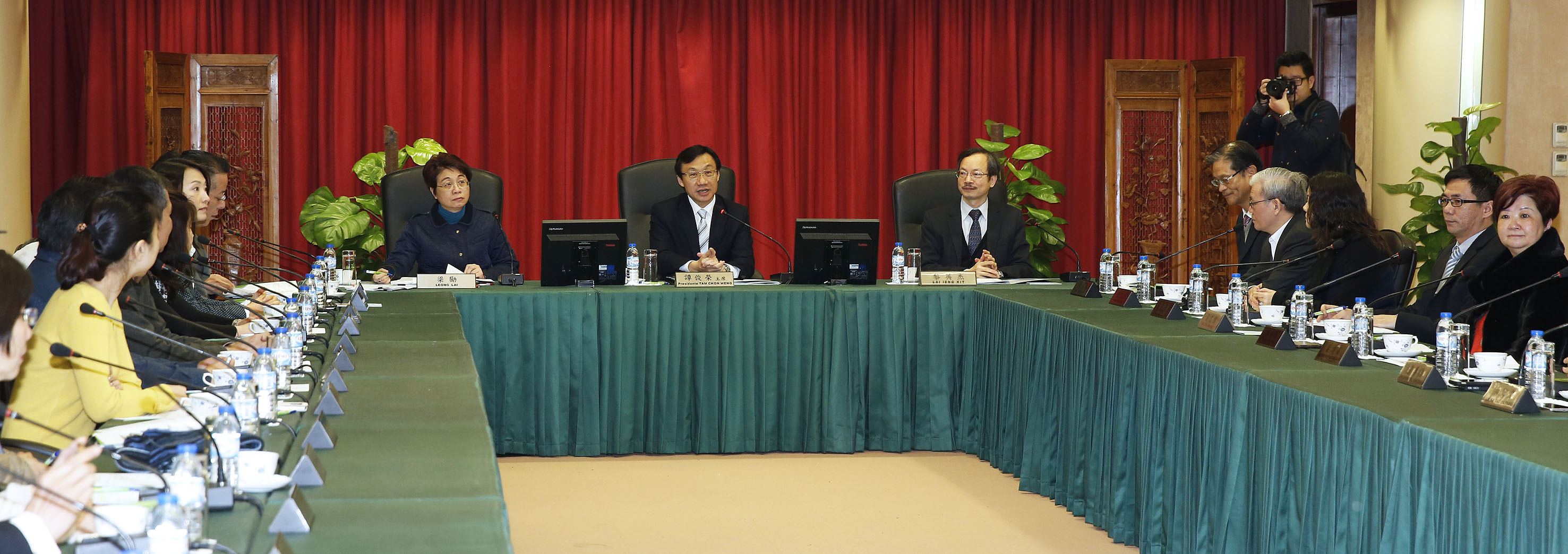 會議開始,教青局青年廳廳長袁凱清簡介2015年青年事務的重點工作,包括積極落實青年政策、加強青少年多元化教育、致力提升學生和青年體質等方面的工作。譚俊榮司長藉此機會聽取青年事務委員會委員對2015年社會文化範疇施政方面的意見和建議。
