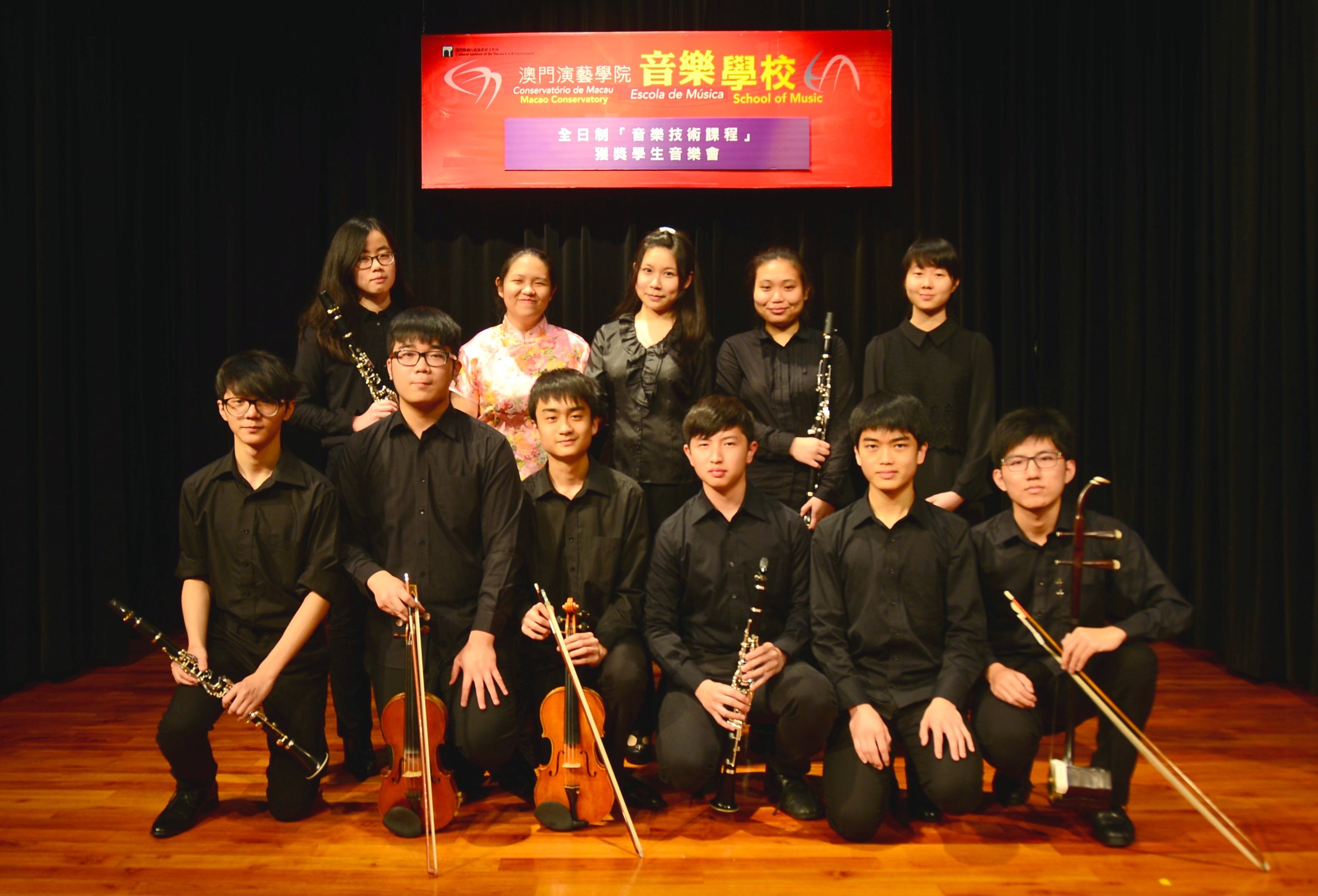 全日制“音樂技術課程”課程專業的學生多次代表音樂學校及澳門,每年於國內外大型音樂比賽屢獲佳績,為校為澳爭光。是次演出者為二零一四/二零一五學年之優秀獲獎學生,包括:高三學生方騰,奪得二零一四年澳門青年音樂比賽二胡獨奏高級組第一名及韓國第一屆中外民樂交流大會二胡比賽海外組二等獎;高一學生馮思源,奪得第十四屆香港(亞太區)鋼琴大賽柴可夫斯基、卡巴列夫斯基作品比賽澳門選拔賽青年組冠軍;高二學生陳昊中,奪得二零一四年澳門青年音樂比賽小提琴高級組第二名;高一學生李如鋆,奪得二零一四中國華南地區第六届管樂、打擊樂獨奏、重奏邀請賽專業高中組第一名;以及由單簧管專業學生鄭瑞昕、李玥瑄、蘇蔚瑩、鄭栢豪及高嘉灃組成的單簧管五重奏,奪得二零一四年澳門青年音樂比賽木管重奏組第一名等等。有關成績有賴該校老師的教學及啟迪,同時也是家長們支持及鼓勵子女學習音樂的豐碩成果。