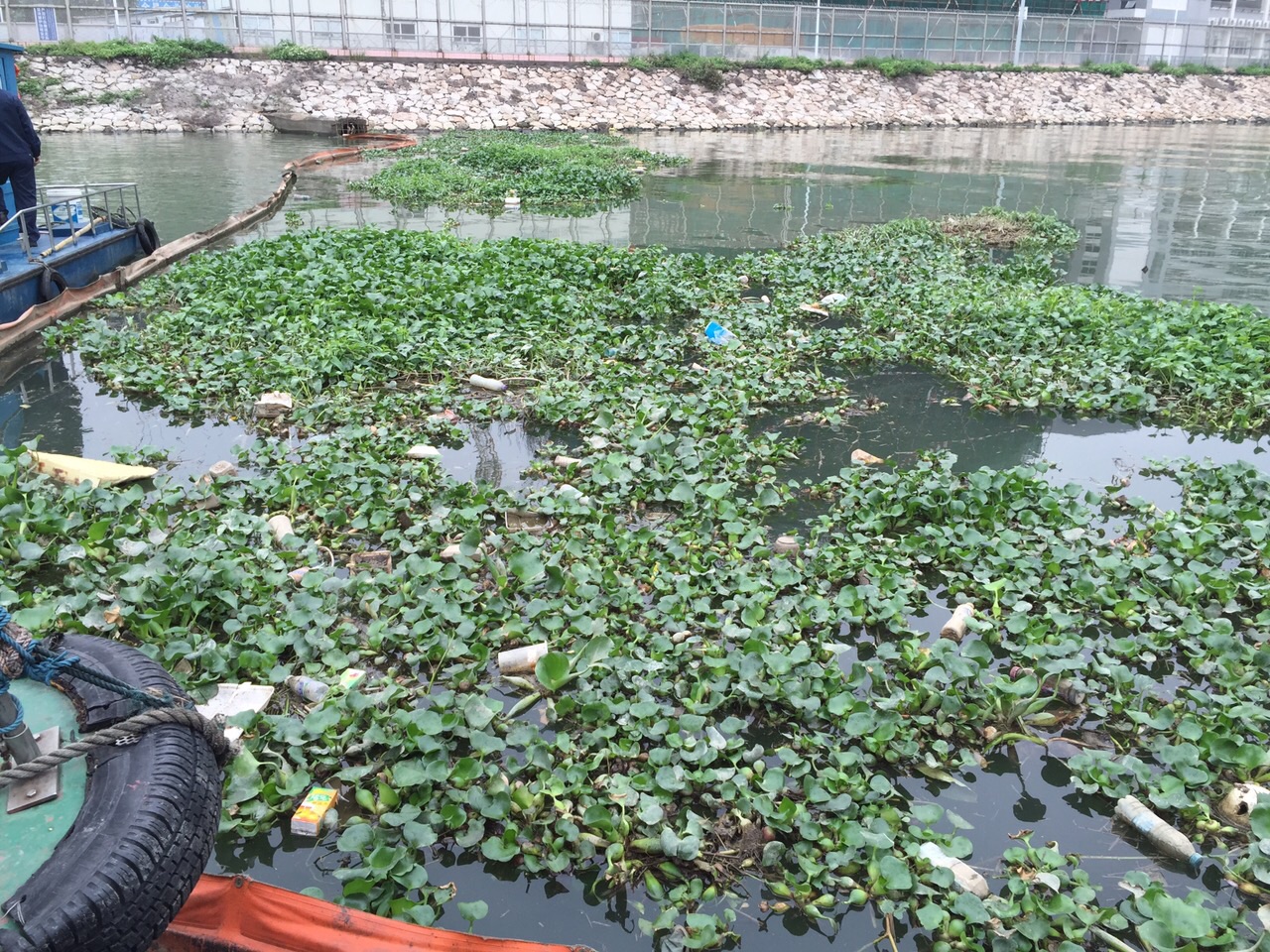 因應近期鴨涌河一帶的水浮蓮有顯著的增加,為保障河面的環境清潔,海事及水務局近日加派船隻和人員清理水浮蓮。