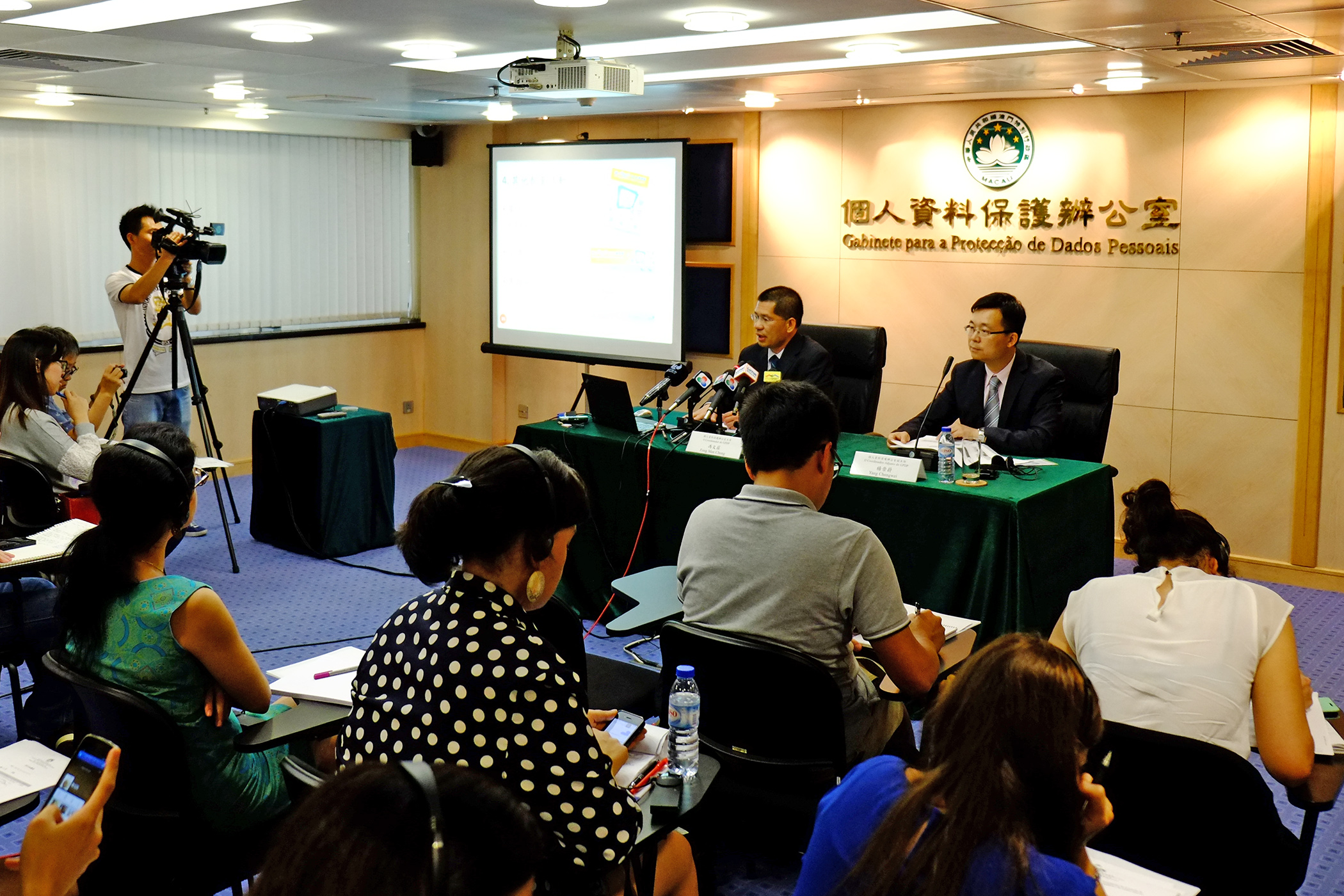 2015「私隱週」於5月3日至9日舉行 ,期間個人資料保護辦公室會舉行多項宣傳活動。個人資料保護辦公室今日下午三時舉行『「2015私隱週」暨「澳門中學及大專學生對個人資料保護的認知狀況及需求調查研究」(2014)發佈』記者會,由主任馮文莊及副主任楊崇蔚介紹本年度「私隱週」活動詳情,以及公佈「澳門中學及大專學生對個人資料保護的認知狀況及需求調查研究」(2014)結果。
