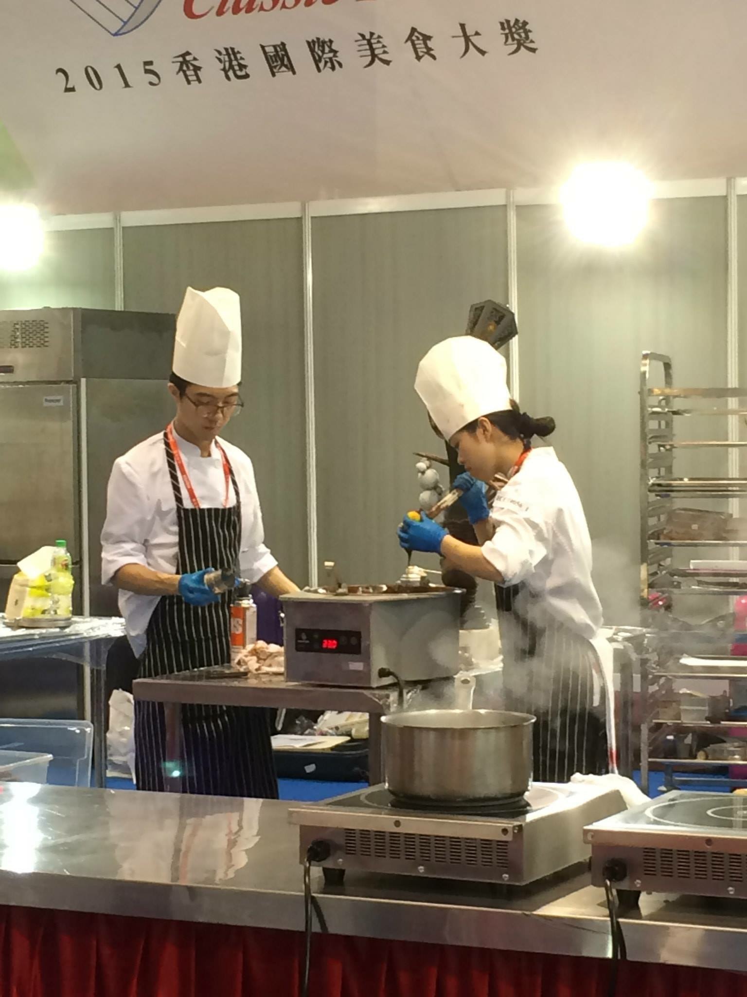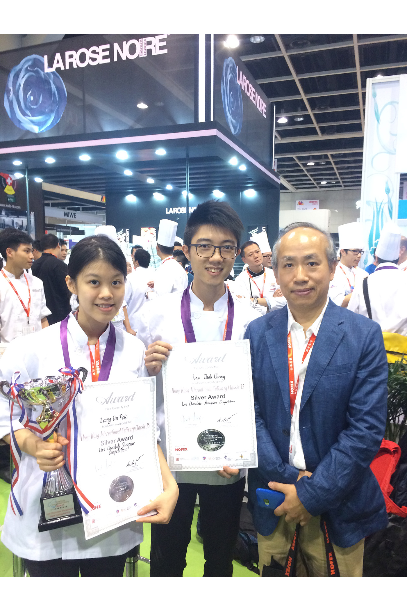 旅遊學院廚藝導師劉擇祥,亦是學院酒店管理學士學位課程畢業生及麵包及西餅製作文憑課程畢業生梁婉璧組隊,於今年《香港國際美食大獎》的「現場朱古力裝飾擺設比賽隊際賽」中勇奪亞軍及最佳味道獎。