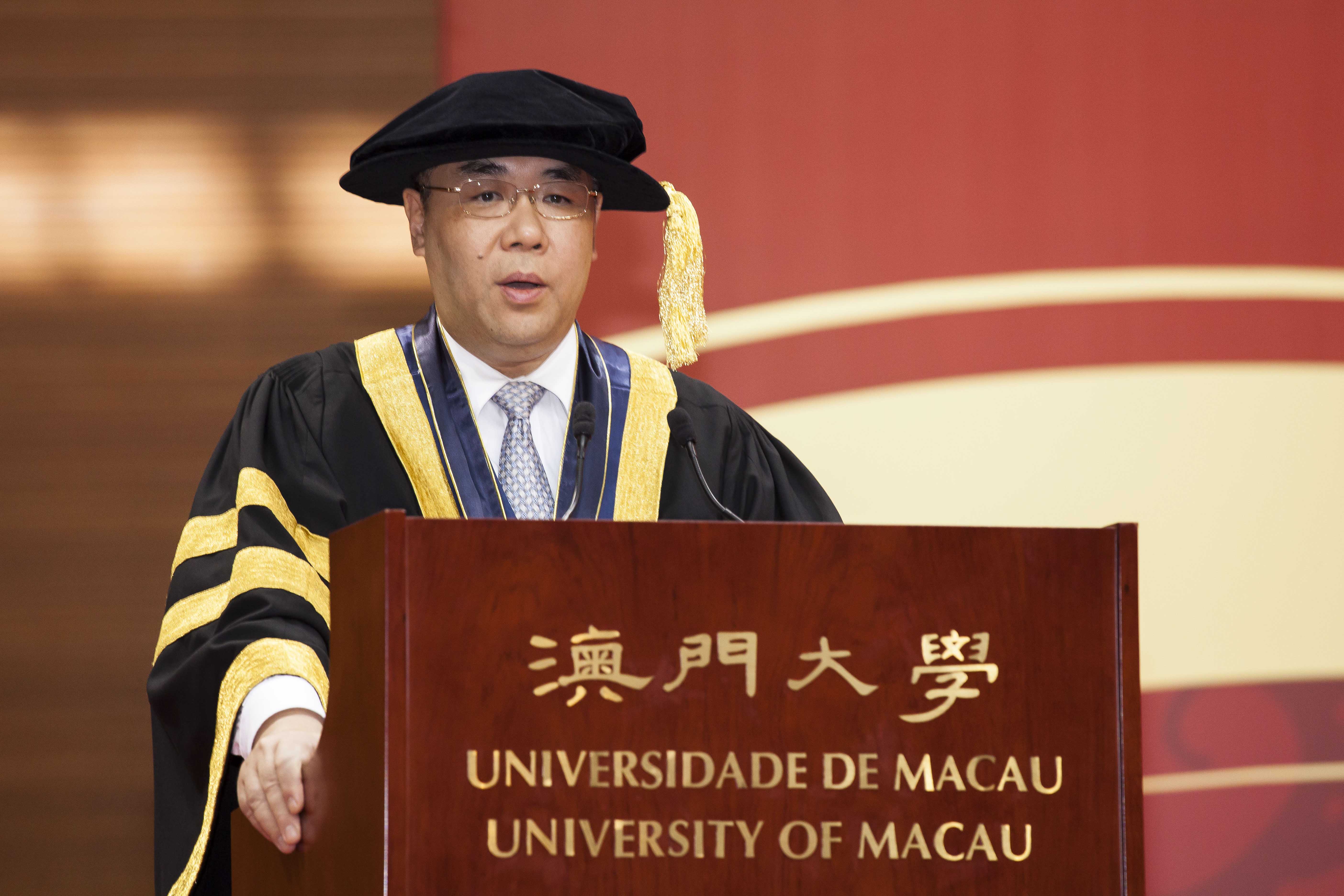 崔世安致辭時表示,澳大近年在建設新校園的同時,不斷加強學科建設,引進優秀人才,改革課程體制,優化管理程序,使得澳大進一步走上良性發展的軌道,社會聲譽和學術影響得到有效提升,同時也為澳門社會輸送了優良的人才。澳大緊緊抓住新校園全面啓用這一難逢的歷史機遇,全面實施專業、通識、研習和社群教育四位一體教育模式,從硬件和軟件建設兩方面都在向國際一流大學的目標進發。澳大的國際影響力不斷提高,為澳門國際形象的提升提供了正能量,注入了新内涵,特區政府和澳門市民都有目共睹。